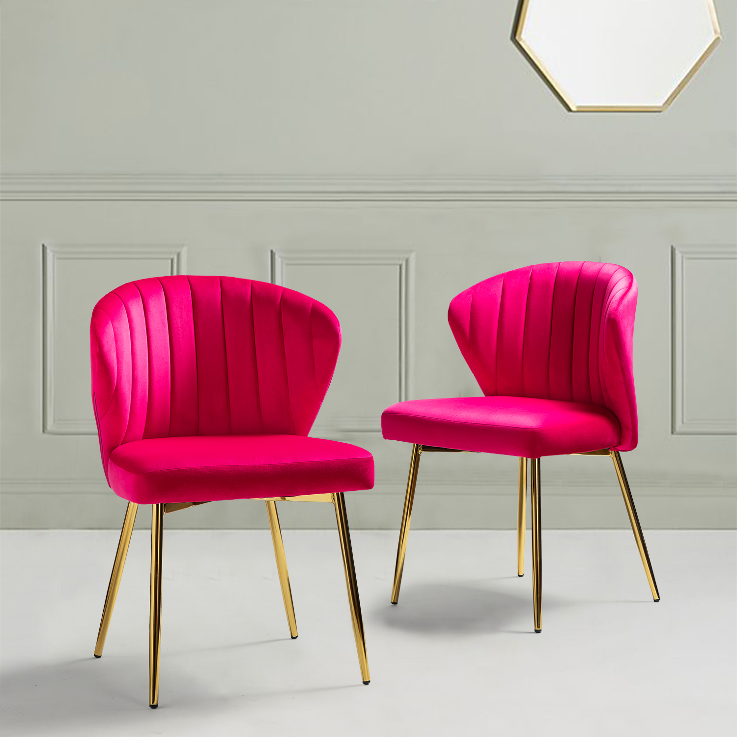 Milia Fuchsia Velvet Channel-Tufted Side Chairs