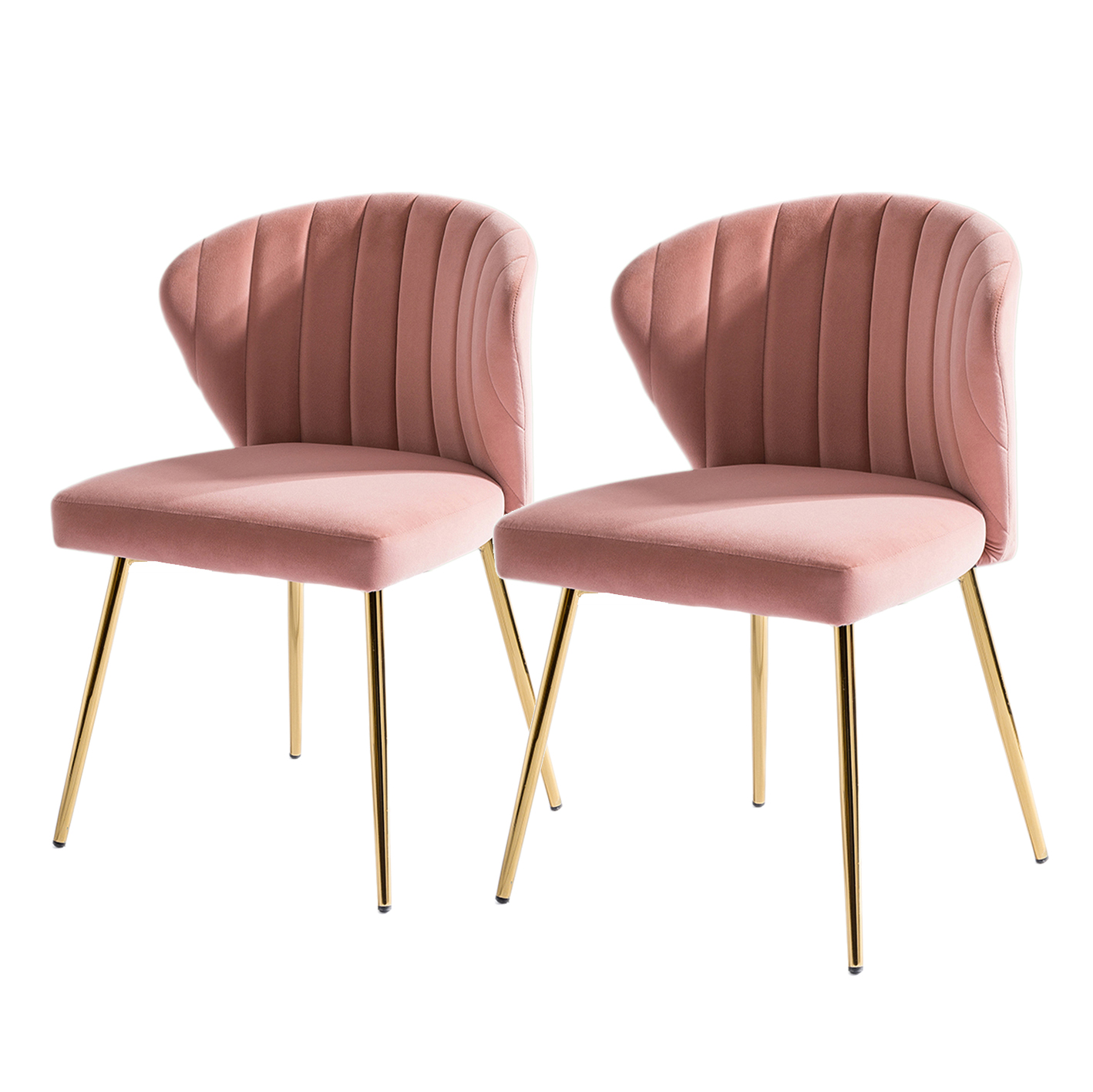 This stylish dining side chair set brings sophisticated lines to your dining room or living space. These chairs feature a channel-tufted back and a comfortable, foam-filled cushion. Upholstered in durable velvet, this chair set adds a touch of timeless fashion to your home. The metal legs offer a modern design while enhancing stability and durability.