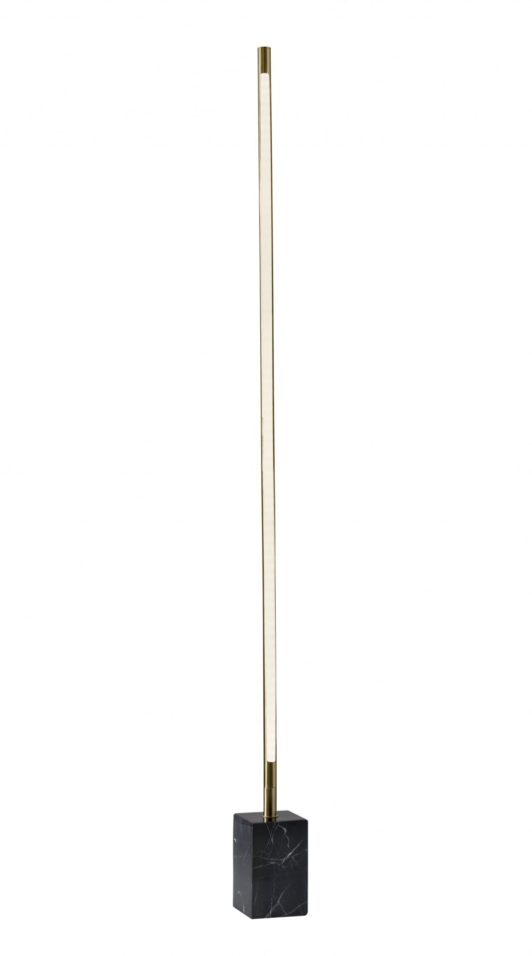 Slim and sleek, this minimalist floor lamp is a must-have for contemporary spaces. A single long tube emits 2,500 lumens of fully dimmable light, reflecting off walls to create a warm, ambient glow. The sturdy, rectangular black marble base adds a touch of elegance to its modern design. This floor lamp features a convenient touch dimmer switch located at the top of the shade for easy operation. The integrated LED lights are long-lasting, with a lifespan of 50,000 hours. Please note, this lamp is not compatible with smart outlets and comes with a clear cord for a clean aesthetic.