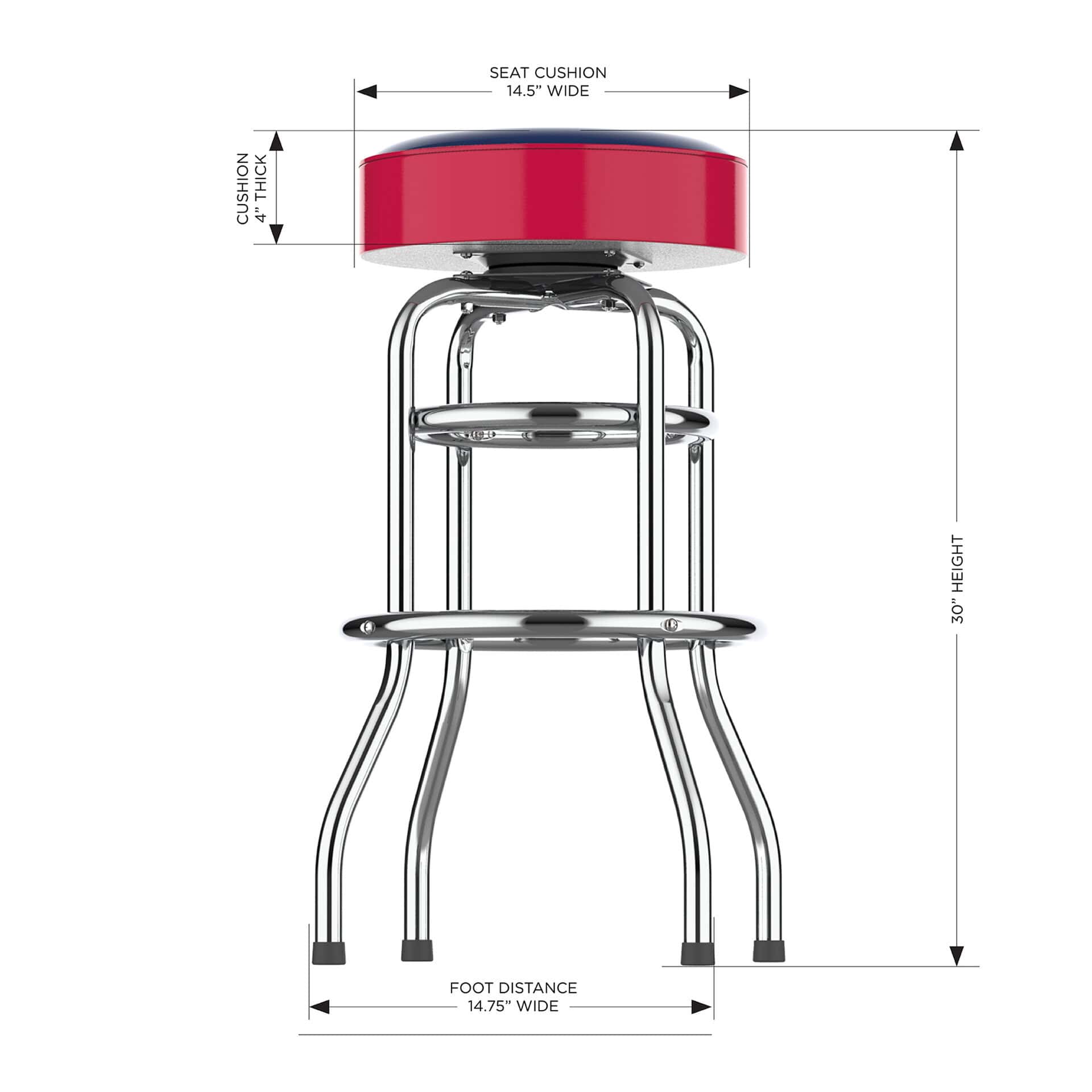 This American-made bar stool is built to last, offering commercial-grade quality and showcasing your team pride. Its durable construction ensures years of use, while the vibrant team colors and logos are designed to stay put. Perfect for your game room, bar area, or man cave! Show off your team spirit in style and comfort.
