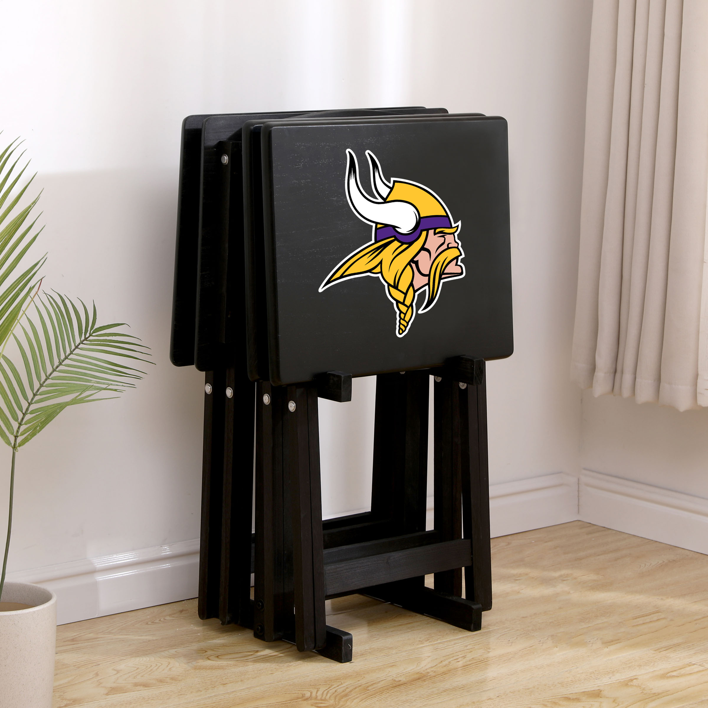 Enjoy the convenience of having snacks and drinks readily available while displaying your team spirit. When not in use, the trays neatly stack into the included storage rack, keeping your space organized.