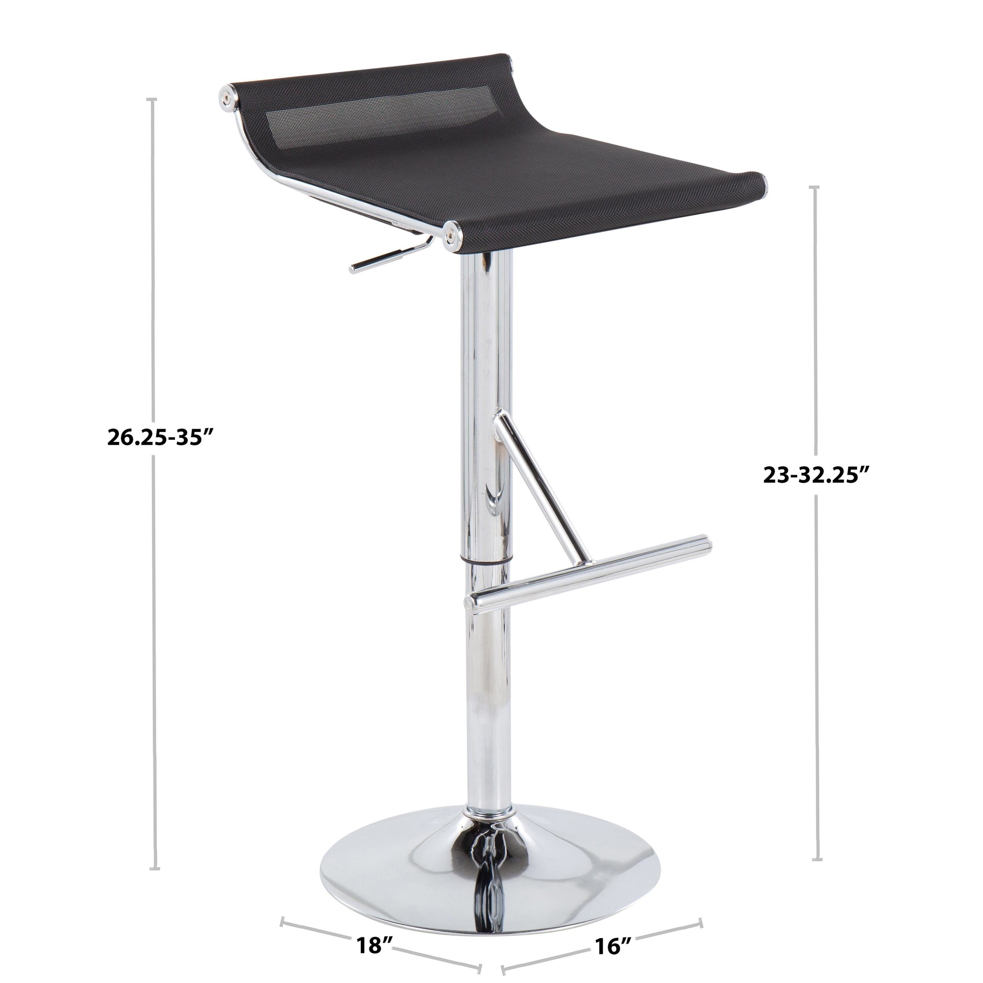 Add a touch of style to your bar with this contemporary bar stool. The adjustable height and 360-degree swivel let you customize your comfort. The sleek mesh fabric seat and low back offer a modern look. A sturdy chrome footrest and base ensure lasting use. The stool measures 18″L × 16″W and adjusts from 26.25-35″H. The seat depth is 15″ and the inside seat width is 15.25″. The distance from the seat to the footrest is 16″, and the backrest height is 3″. It holds up to 250 lbs and is for indoor use only. Some assembly is needed.