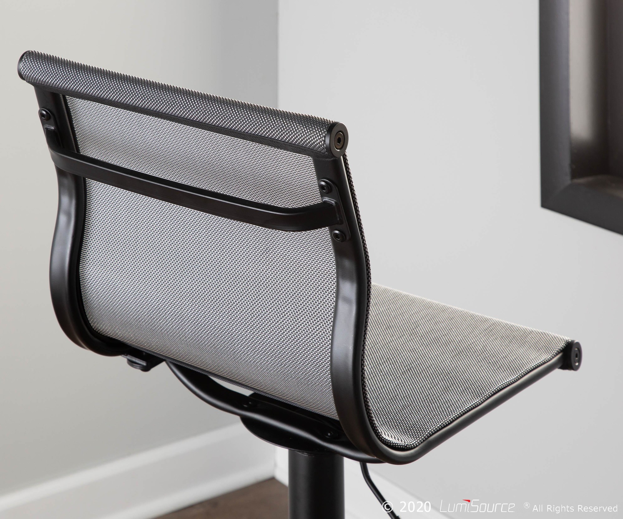 The Mirage Bar Stool is a sleek addition to any bar or kitchen area. Its black metal base is beautifully complemented by a stylish perforated mesh upholstery, creating a modern and contemporary look. Available in various colors, you can easily find the perfect match for your space. Enjoy the comfort of its adjustable height and 360-degree swivel, making it both functional and fashionable.