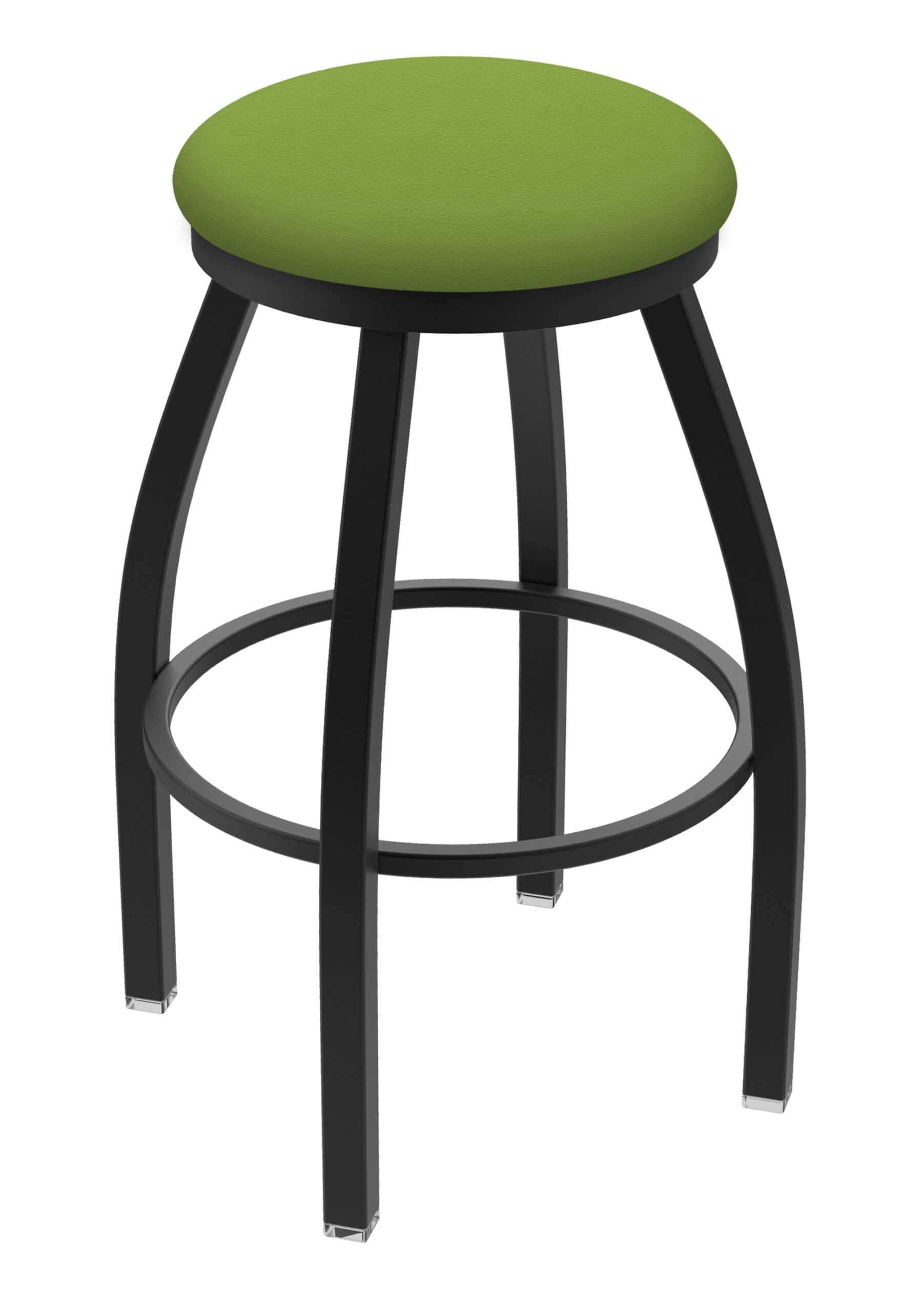 This extra-tall swivel bar stool offers a blend of contemporary design and robust construction, perfect for completing your bar or dining area. Its larger base provides enhanced stability, while the wider seat ensures superior comfort. The black wrinkle finish adds a touch of sophistication, and the Canter Kiwi Green seat provides a pop of color.