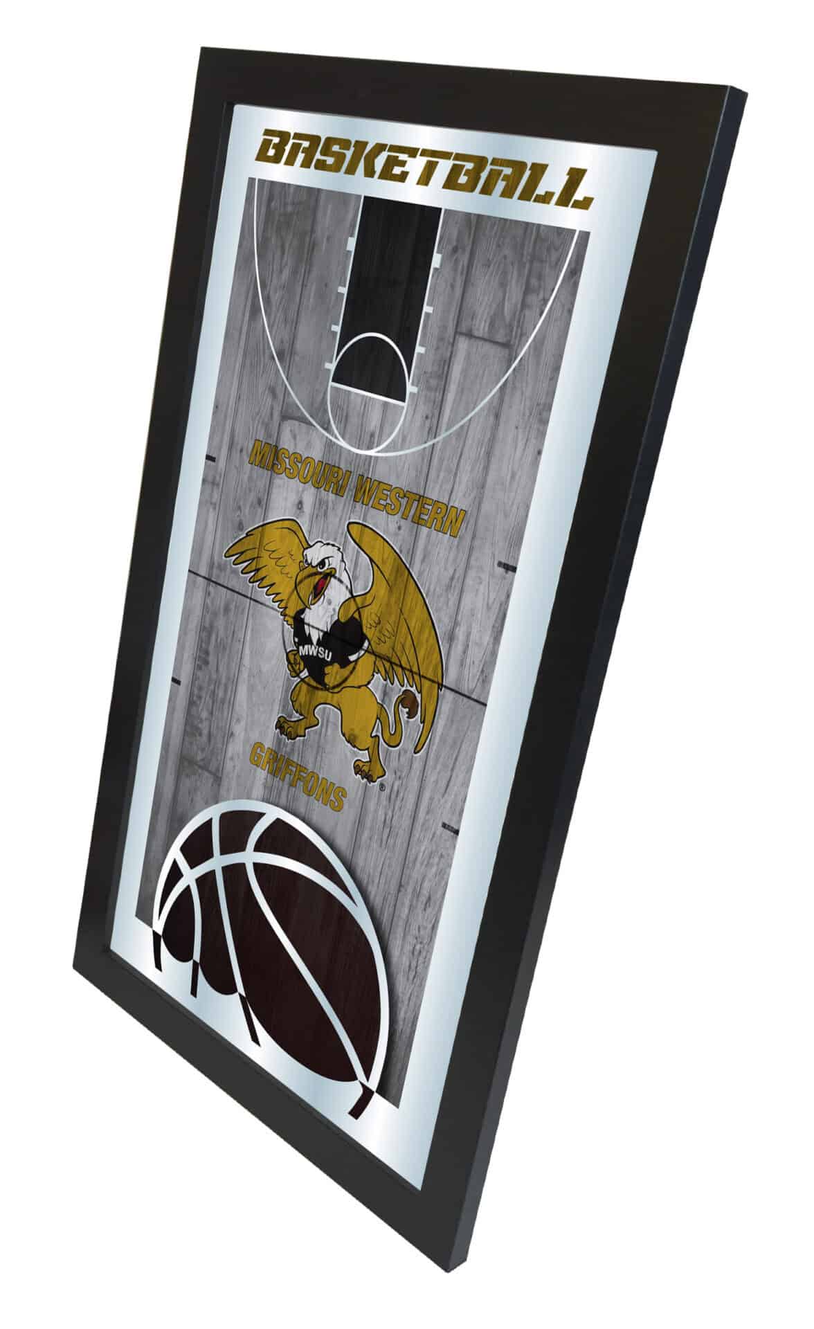 Show your school pride with this Official Licensed Basketball Mirror. With its simple yet elegant design, vibrant colors burst through the 1/8″ thick glass and are beautifully highlighted by mirrored accents. The mirror is framed with a black, 1 1/4″ wrapped wood frame featuring dual saw-tooth hangers, making it ideal for your office, garage, or any room in the house. Whether for yourself or as a gift for a recent grad or sports super fan, this mirror is a fantastic addition to any space.