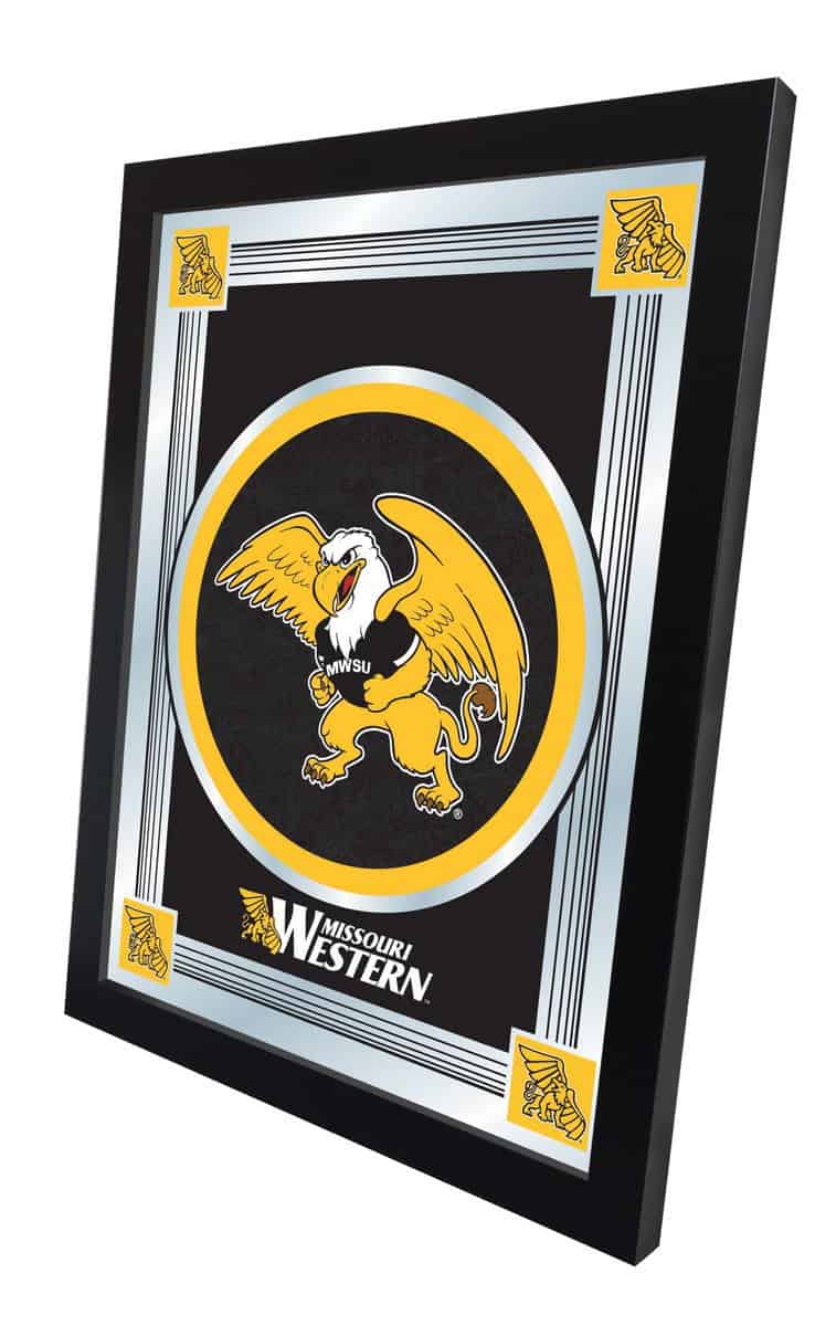 Show your school pride with the Missouri Western State University 17×22 Logo Wall Mirror. This mirror features a simple yet elegant design that showcases vibrant colors through its 1/8″ thick glass, enhanced by mirrored accents. The mirror is framed in a black, 1 1/4 inch wrapped wood frame and includes saw-tooth hangers for easy installation. Measuring 17″ x 22″, it’s perfect for your office, garage, or any room in your home. This mirror is a great gift idea for recent graduates, sports fans, or even for personal use, offering a touch of school spirit to any space.
