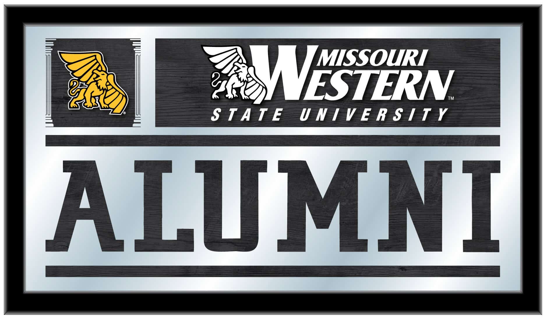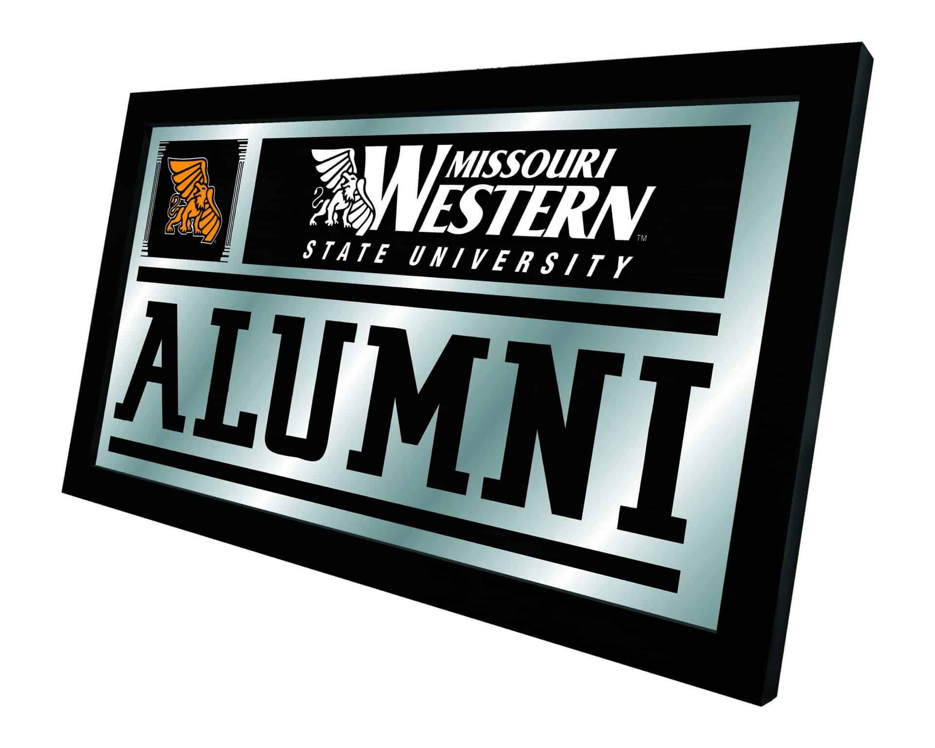 Show your school pride with the Missouri Western State University 26×15 Alumni Wall Mirror. This elegantly designed mirror features your school colors bursting through the 1/8″ thick glass, enhanced by mirrored accents. The mirror is framed with a stylish black, 1 1/4″ wrapped wood frame that includes saw tooth hangers for easy installation. Measuring 26 inches in height and 15 inches in width, this mirror is perfect for your office, garage, or any room in your home. Whether you’re buying it as a gift for a recent graduate or treating yourself, you can take pride in owning a product that showcases your school spirit.