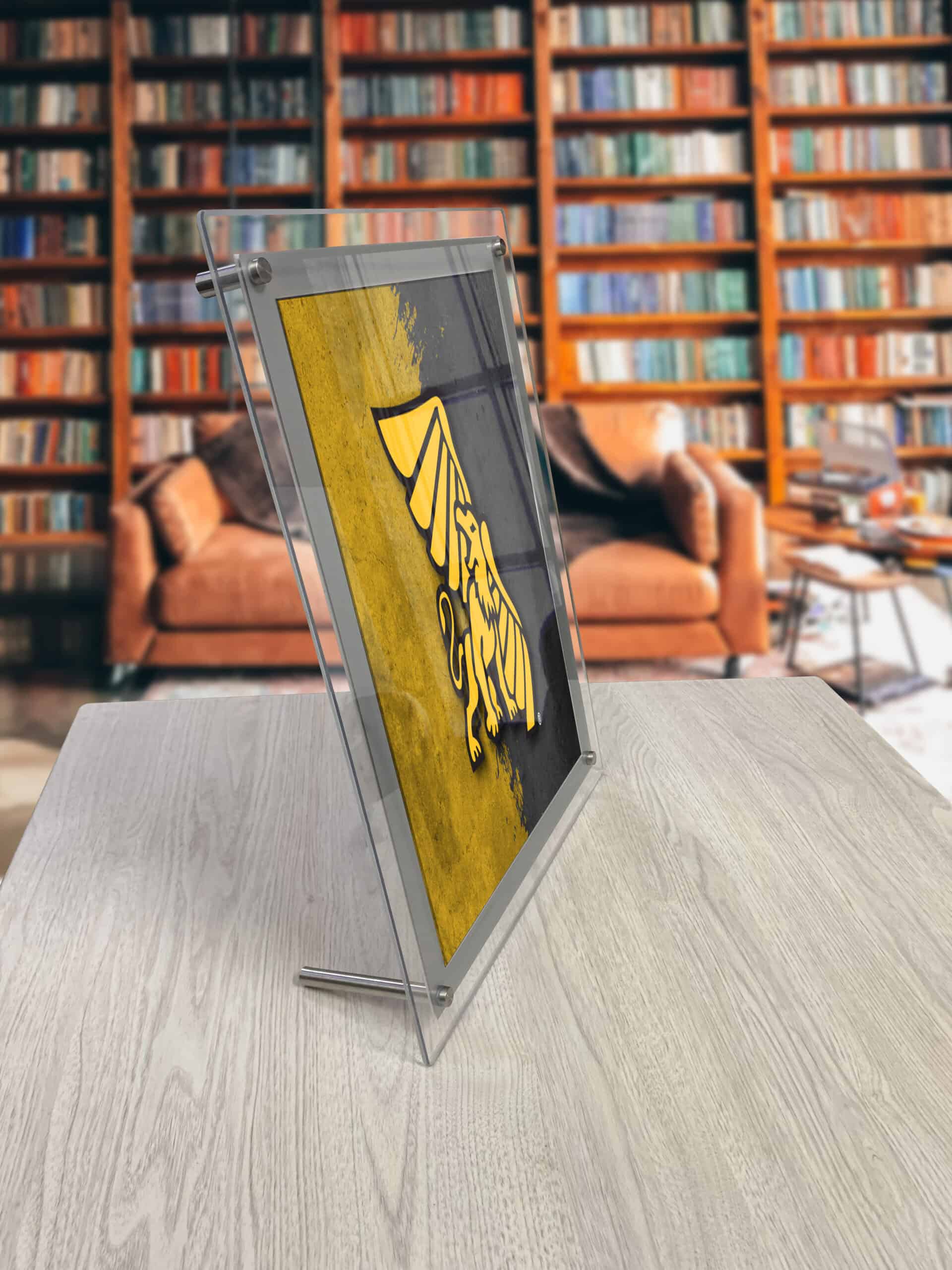 - Mounting: Includes hardware for wall mounting (1″ Stand-offs) or desktop display (3 3/4″ foot).