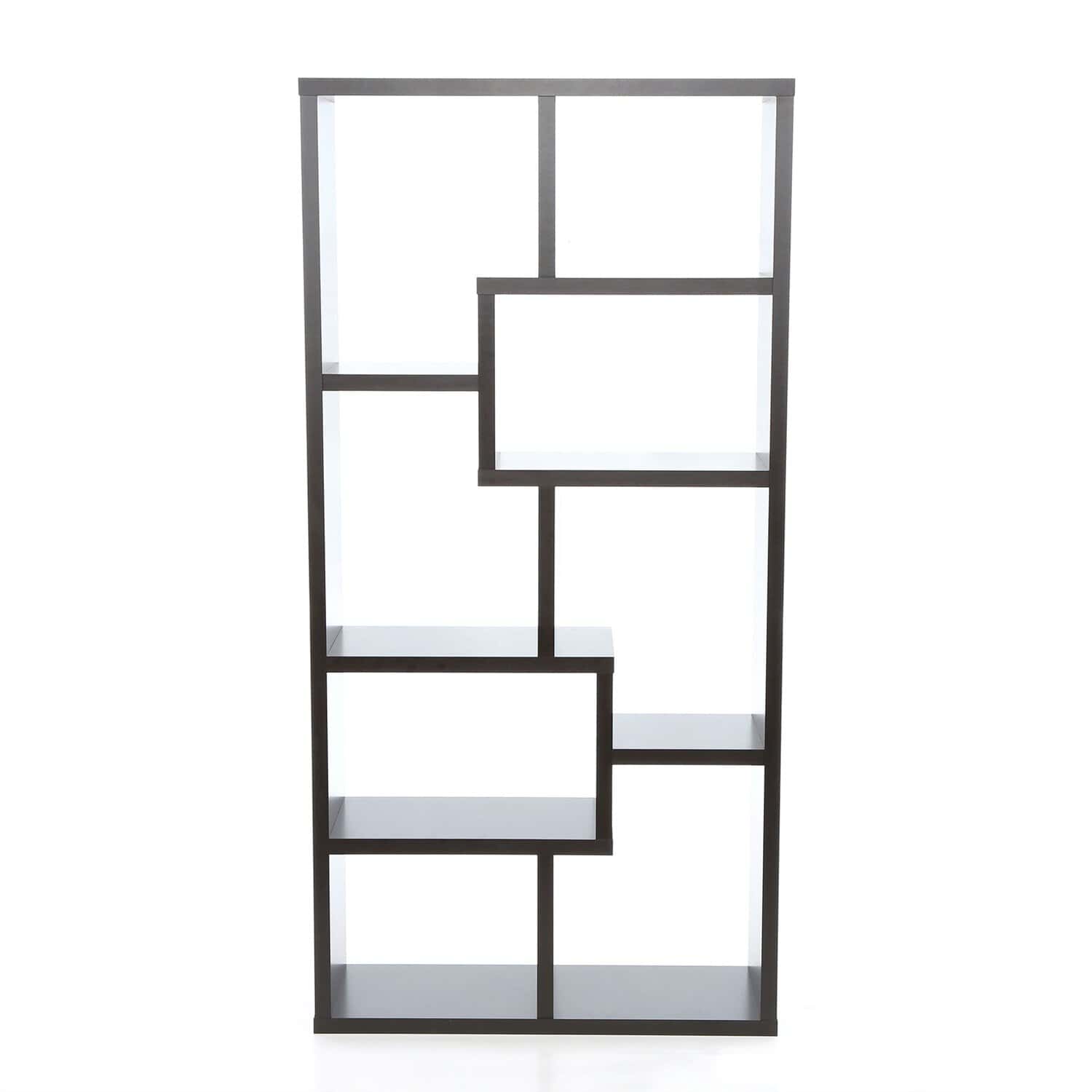 - Design: Contemporary style with a unique staggered shelving pattern