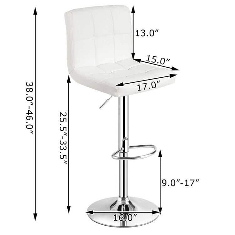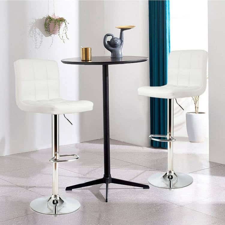 - Set Includes: 2 bar stools with white PU leather swivel seats