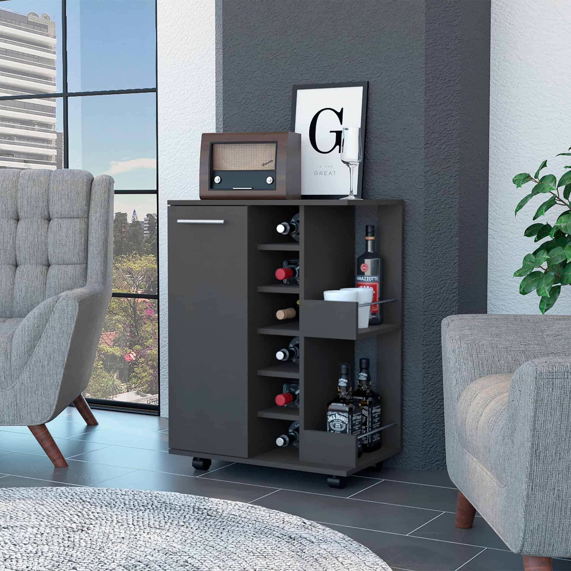 - Holds up to 6 wine bottles: Includes cabinets for convenient storage.