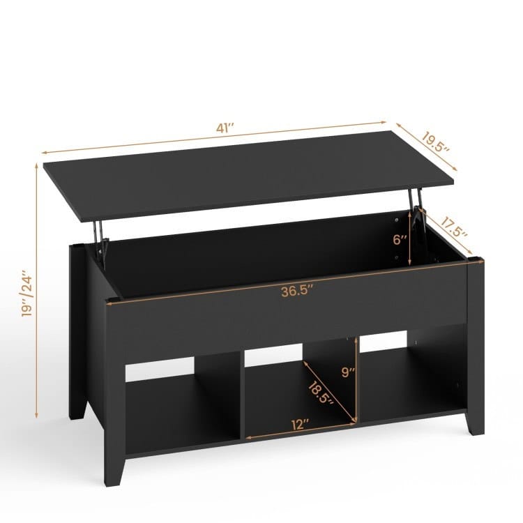 The Modern Black Wooden Lift Top Coffee Table With Storage is a versatile and functional addition to any living space, especially designed for man caves or modern living rooms. Featuring a lift-top design with a durable solid lifting mechanism, this table provides a convenient way to access hidden storage while maintaining a sleek and contemporary look. The sturdy iron springs on both sides ensure smooth lifting and lowering of the top, which can be fixed at a height of 24 inches to meet your various needs. With ample hidden storage under the top and three open shelves at the bottom, it is perfect for organizing books, magazines, remote controls, blankets, toys, and snacks. This coffee table combines practicality and style to enhance your space.