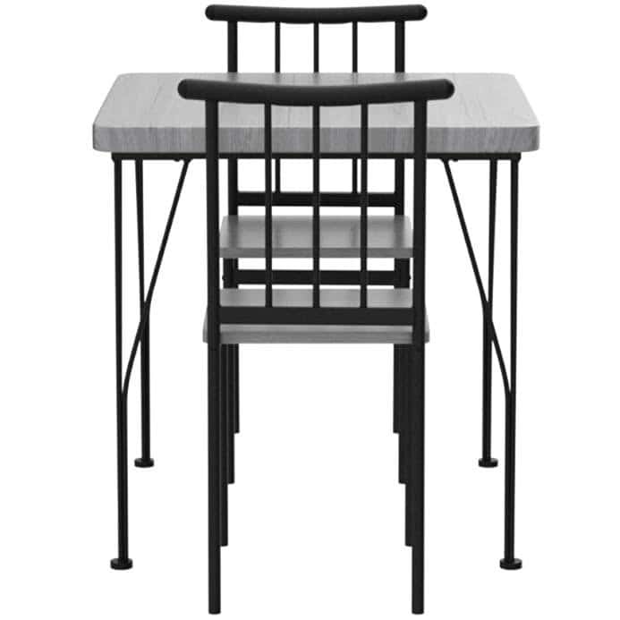 The Modern Compact Metal Frame Dining Set with Grey Wood Table (3-Piece) combines sleek design with functional versatility to enhance any living space. Featuring a sturdy metal frame and a durable grey wood tabletop, this set is both stylish and practical. Ideal for compact spaces, it includes a table and two chairs, making it perfect for apartments, breakfast nooks, or man caves. The chairs conveniently slide under the table to save space and maintain a tidy atmosphere. With its easy-to-clean surfaces and robust weight capacities, this dining set is designed for everyday use, whether you’re enjoying a meal, working, or entertaining.