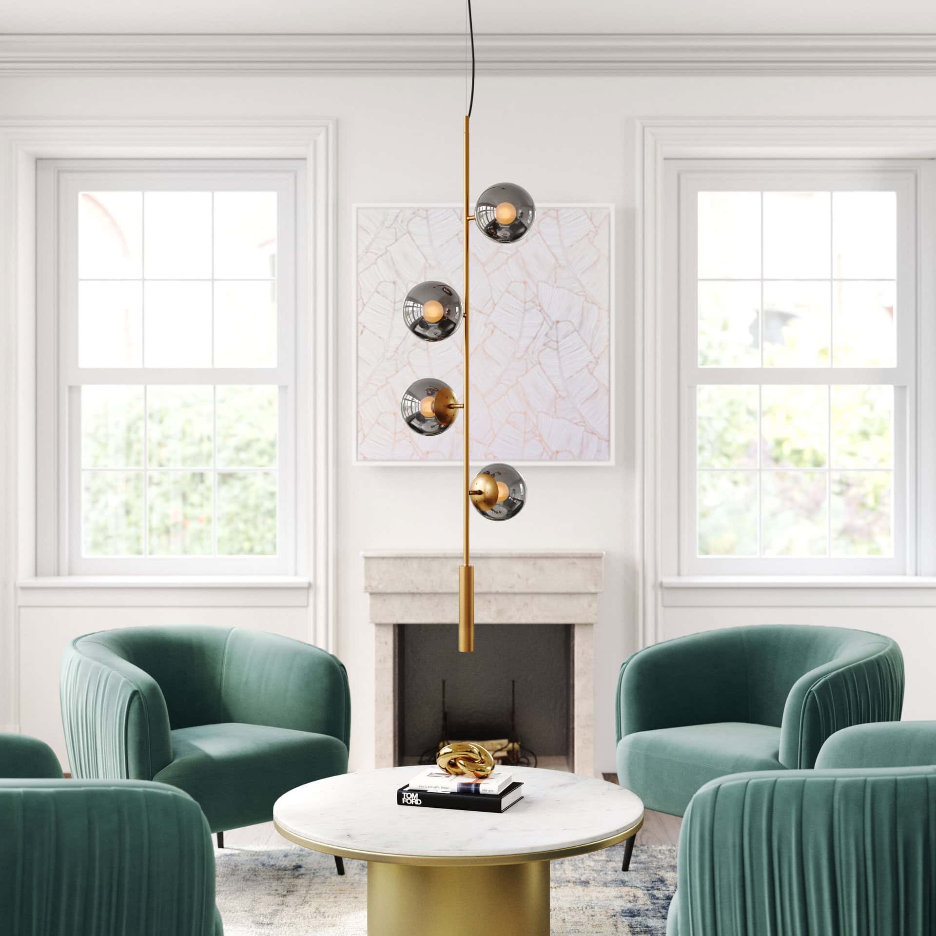 The Modern Deco Gold Ceiling Lamp with Smoked Glass Shades is a stylish blend of modern design and art deco elegance. This ceiling lamp features a gold-plated steel body complemented by smoked glass shades, making it an eye-catching centerpiece for any room. Whether installed in a living area, hotel lobby, or maximalist kitchen, this lamp is sure to elevate the ambiance with its sophisticated aesthetics. With adjustable cord length and easy installation, it combines beauty with practicality, making it a great addition to any home or commercial space.