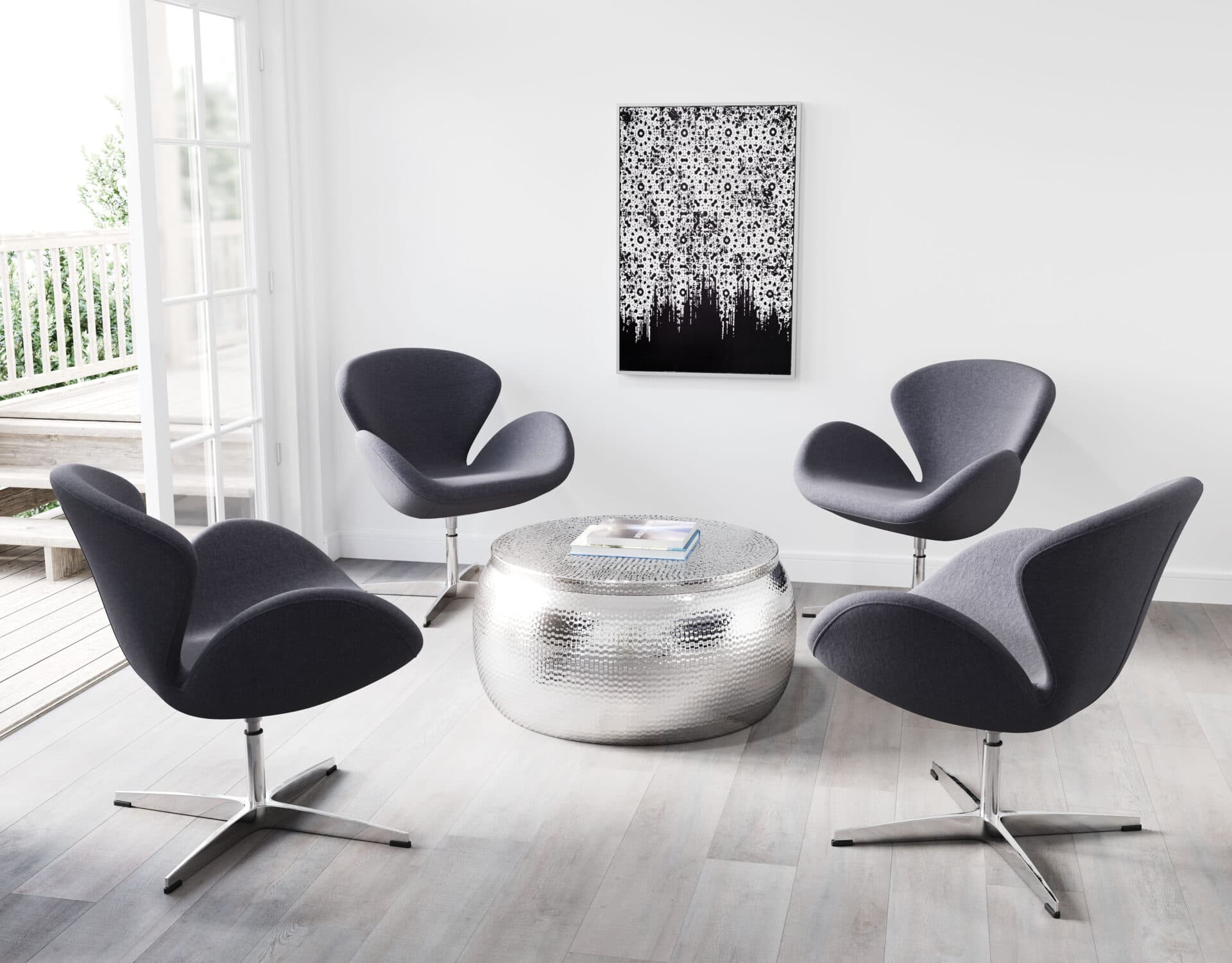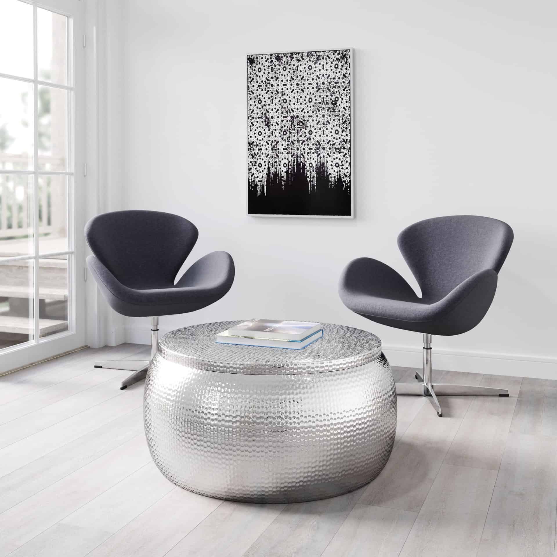 The Modern Glam Round Aluminum Coffee Table is a sleek, statement-making piece that brings both style and convenience to any living space. With its modern glam aesthetic, this coffee table adds sophistication to man caves, living rooms, or any relaxation area, all without the hassle of assembly. Its durable aluminum construction ensures a long-lasting surface, while the round tabletop design offers ample space for decor, drinks, and more.