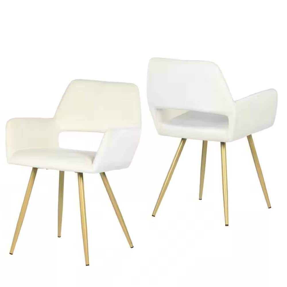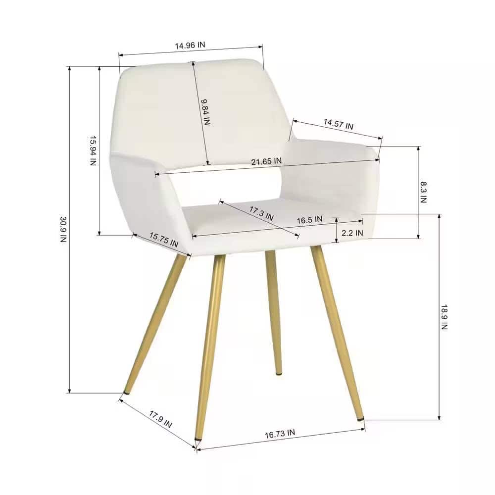Enhance your dining or recreational space with the elegant touch of the Modern Ivory Velvet Dining Chairs with Gold Metal Legs (Set of 2). These chairs are designed to combine style and comfort, featuring velvety soft upholstery and a visually striking cut-out back design. The gold-finished tapered metal legs add a touch of luxury while ensuring durability and stability. Perfect for dining rooms, offices, or hallways, these chairs are an excellent addition to elevate any interior. With a quick and easy assembly process, you’ll enjoy sophisticated seating in no time.