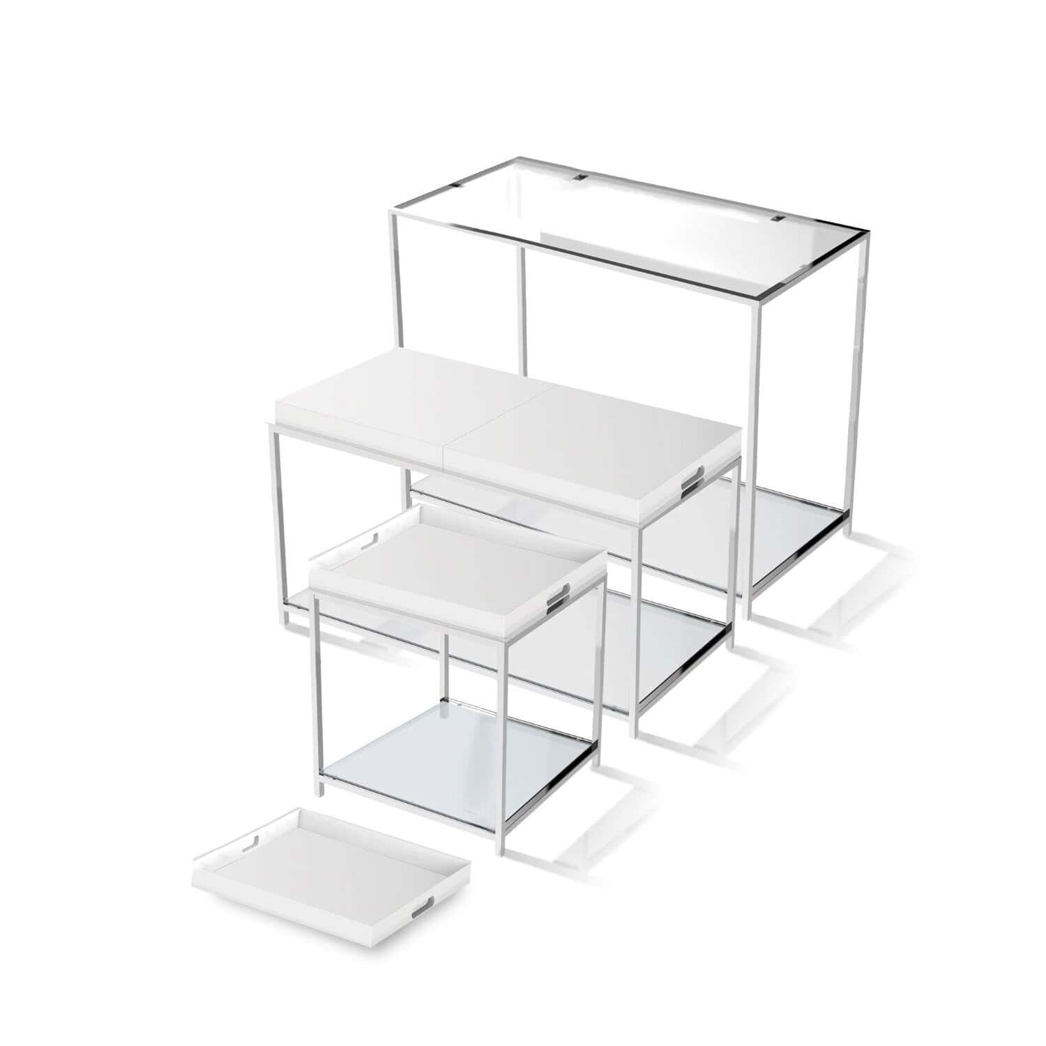 The Modern Metal End Table with Reversible White Tray blends contemporary style with practical functionality, making it a versatile addition to any living space. This elegant end table features a sleek chrome-plated steel frame, a clear tempered glass top, and a bottom shelf for added storage. The highlight of this table is its removable and reversible white tray, which can serve as a flat surface or a serving tray, enhancing its multi-functional use. Designed for durability and modern aesthetics, this piece is perfect for complementing your man cave, living room, or any space in need of a stylish accent table.