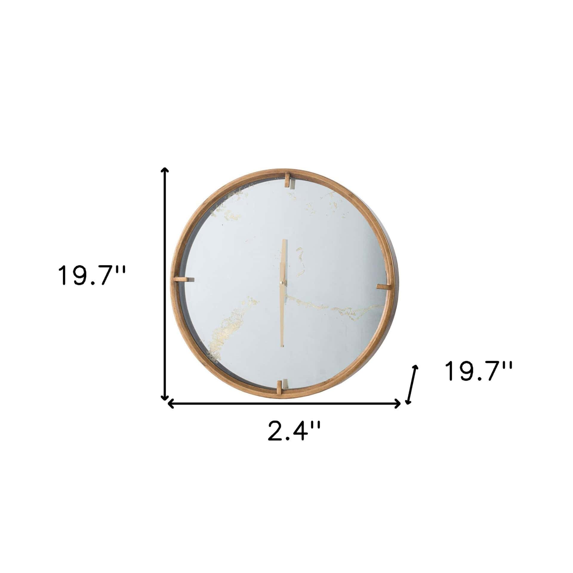 Standing out in style and simplicity, the Modern Minimal Gold and Mirror Round Wall Clock lends a modern touch to your home with a glamorous tone. The gleaming brass-toned frame encloses a mirror face with soft gold remnants, making this timepiece an ideal fit for any contemporary setting. Featuring a perfect round shape with short arms and no numerals, this wall clock serves as a sophisticated décor piece to complement your living room, entryway, hallway, or foyer. Crafted from high-quality iron, mirror, MDF, and glass, this clock is designed to last and provides a practical yet elegant accent on any wall.