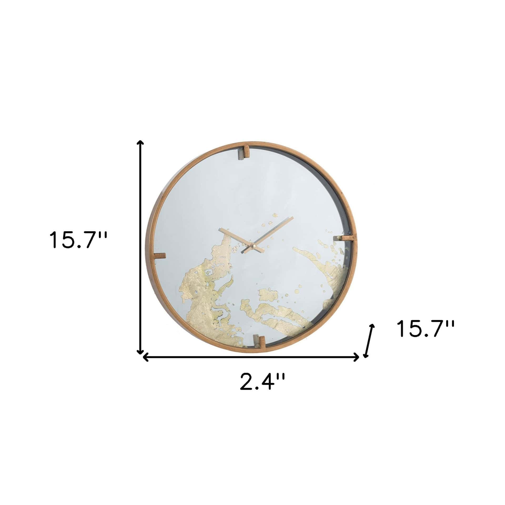 Standing out in style and simplicity, the Modern Minimal Round Gold and Mirror Wall Clock adds a modern touch to your home with a glamorous tone. The gleaming brass-toned frame encloses a mirror face with soft gold remnants, making this timepiece an ideal addition to any contemporary setting. Featuring a perfect round shape with short arms and no numerals, this wall clock is a sophisticated piece of décor to complement your modern living room, entryway, hallway, or foyer. Crafted from high-quality iron, mirror, MDF, and glass, this clock is designed to stand the test of time while serving as a functional and decorative wall accent.