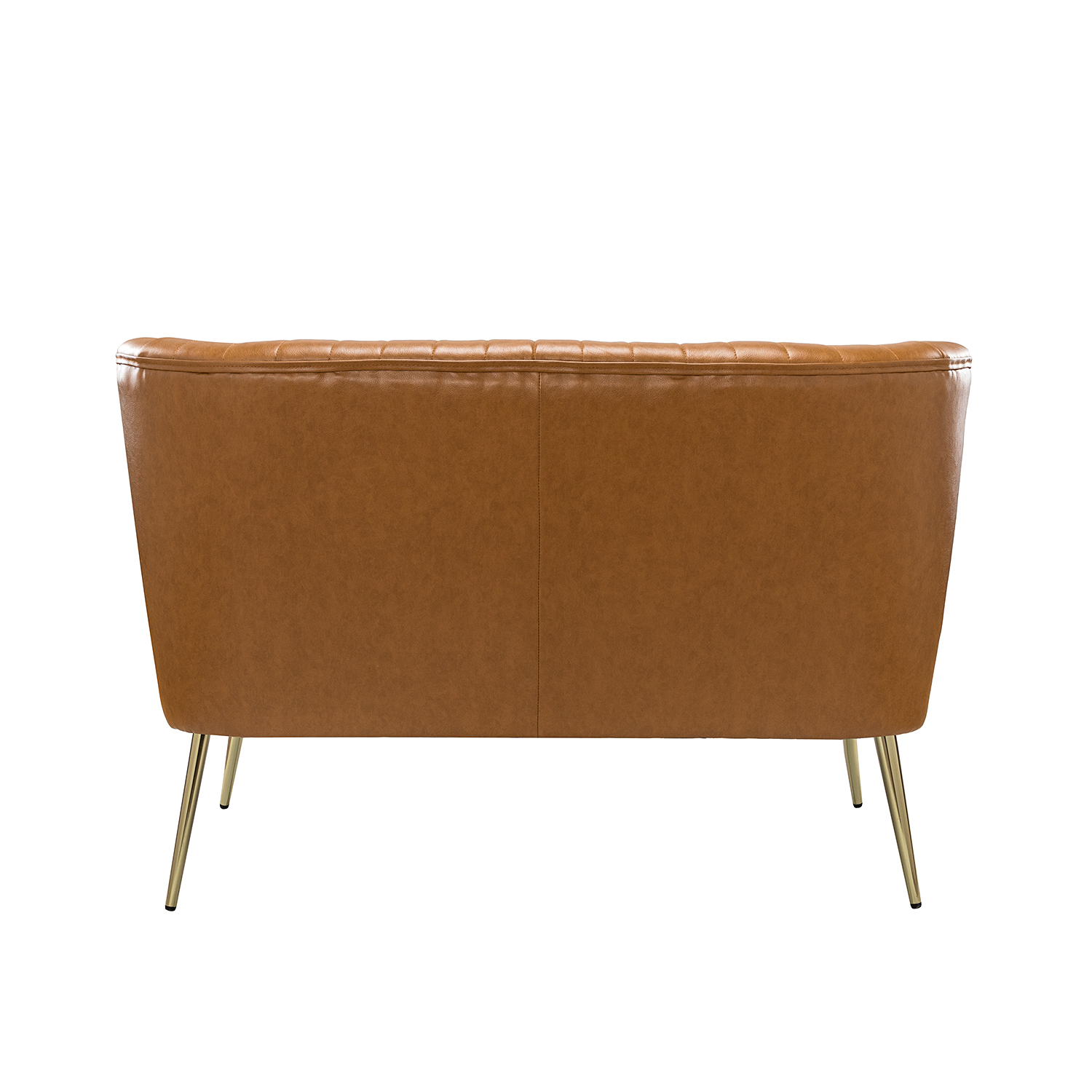 Upgrade your space with this stylish and comfortable armless loveseat. It’s perfect for smaller rooms where you want a touch of modern flair. Made with soft faux leather, this loveseat features a sleek design with a tufted backrest for added sophistication. The sturdy wood frame and shiny flared metal legs ensure lasting support, while the foam-filled seat provides just the right amount of comfort. This loveseat is easy to assemble and ready for years of enjoyment. Key details include: Dimensions (WxDxH): 47 x 30.2 x 31 inches, Seat Dimensions (WxDxH): 45 x 20.8 x 19.2 inches, Product Weight: 44.5 lbs, and a stylish Camel Color. Get yours today!