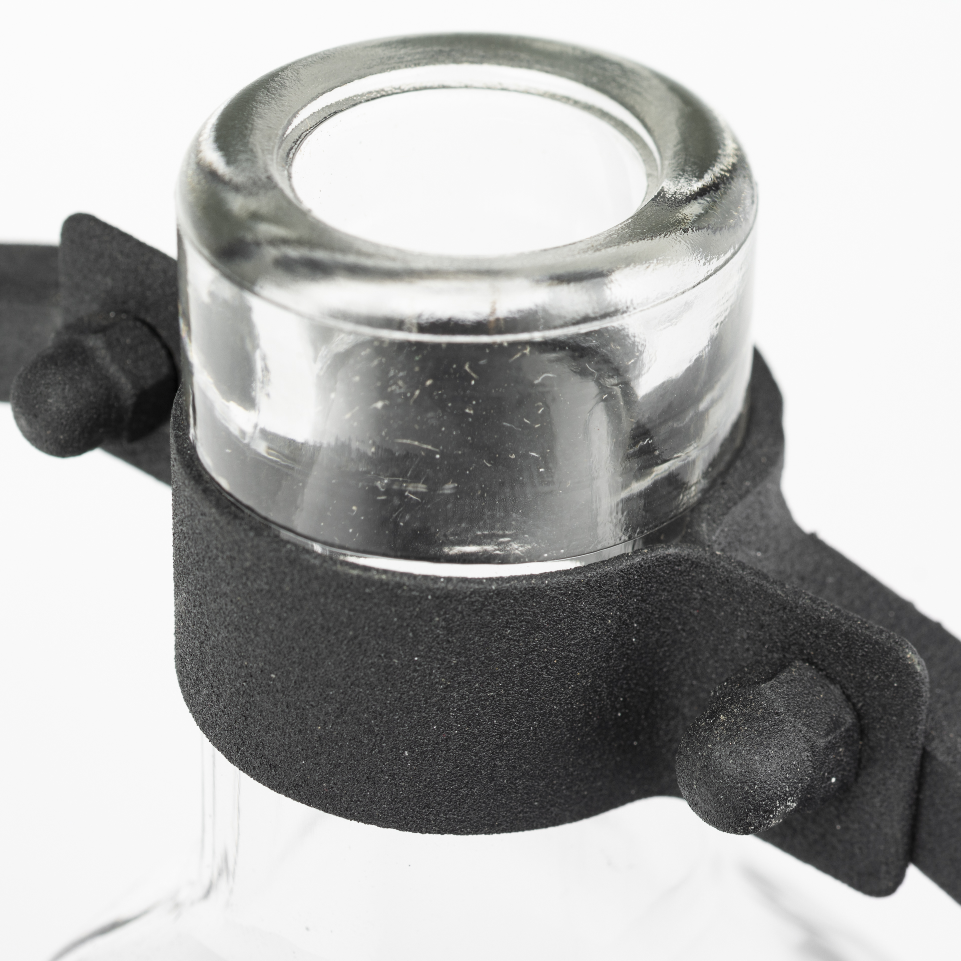 The Monica II vase is a rare and charming adornment that will add character to any room. It features a matte black metal frame with a mounted glass bottle, perfect for displaying live or artificial succulents and adding a touch of unique style. This vase looks great on its own or as part of a curated display.