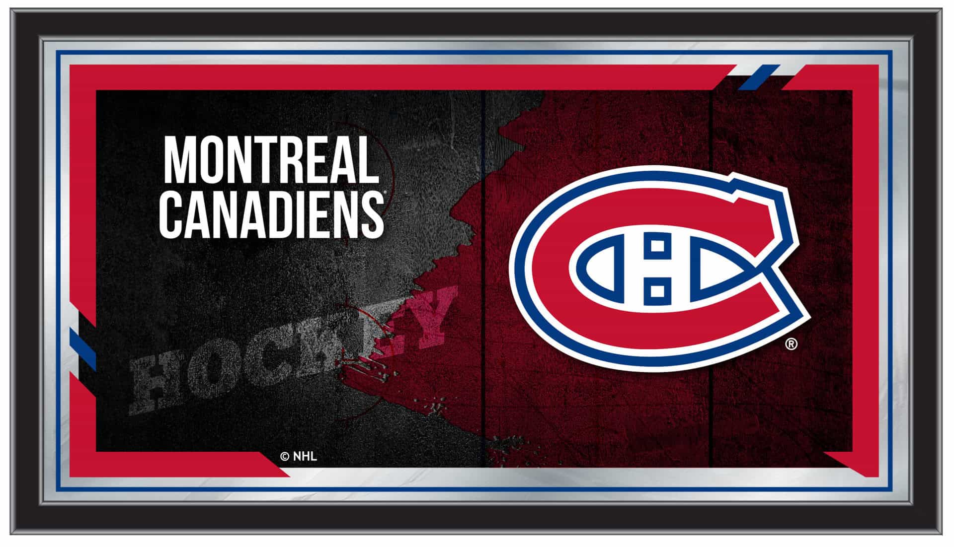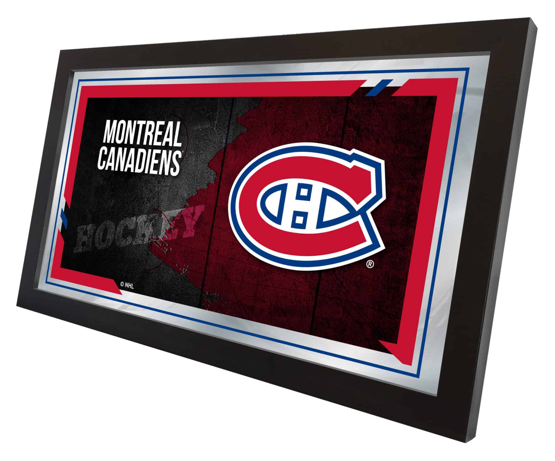 The perfect way to show your team pride, the Montreal Canadiens 15×26 Hockey Collector Mirror displays your team’s symbols with a style that fits any setting. With its simple but elegant design, colors burst through the 1/8″ thick glass and are highlighted by the mirrored accents. Framed with a black, 1 1/4″ wrapped wood frame and equipped with saw tooth hangers, this mirror measures 15″ (H) x 26″ (W) and is ideal for your office, garage, or any room in the house. Whether purchasing as a gift for a recent grad, a sports super fan, or for yourself, you can take satisfaction knowing you’re buying a mirror that is crafted with quality.