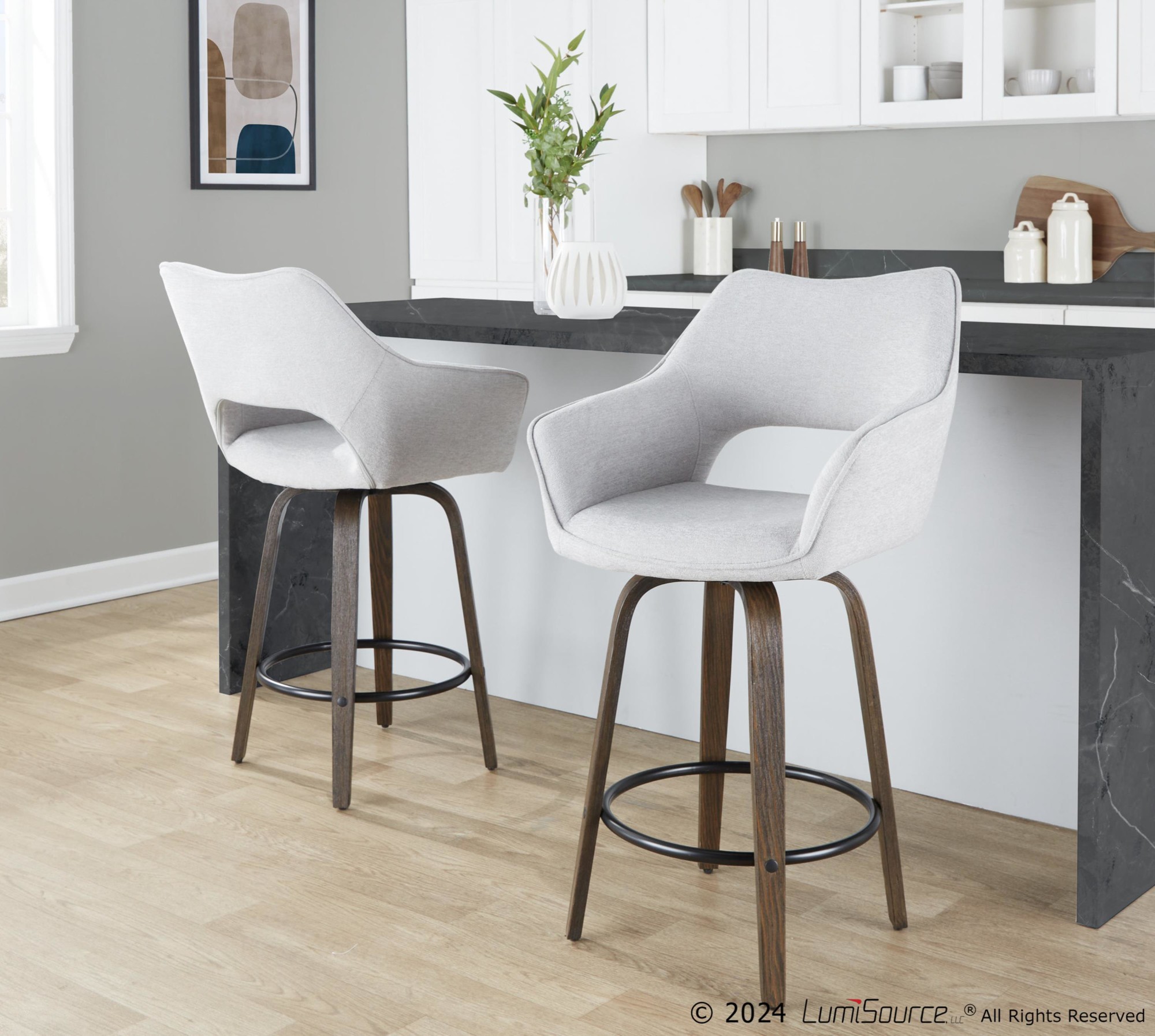 The Mustang 26″ Contemporary Grey Swivel Counter Stools add both style and comfort to any kitchen or counter area. These stools feature a padded, upholstered seat with a stylish cut-out backrest and sleek bentwood legs, sure to catch the eye.