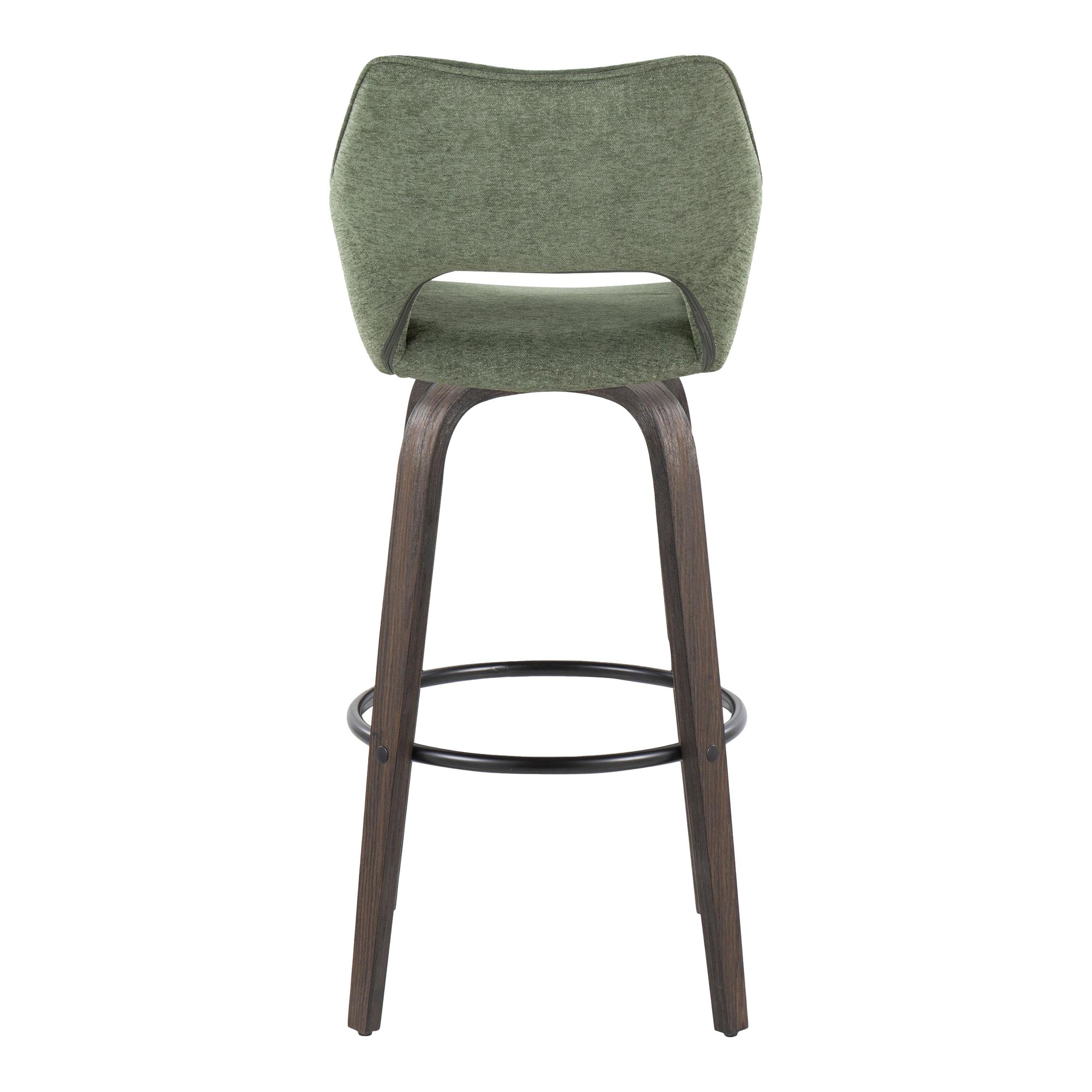 - Walnut glazed bent wood legs with round metal built-in footrest.