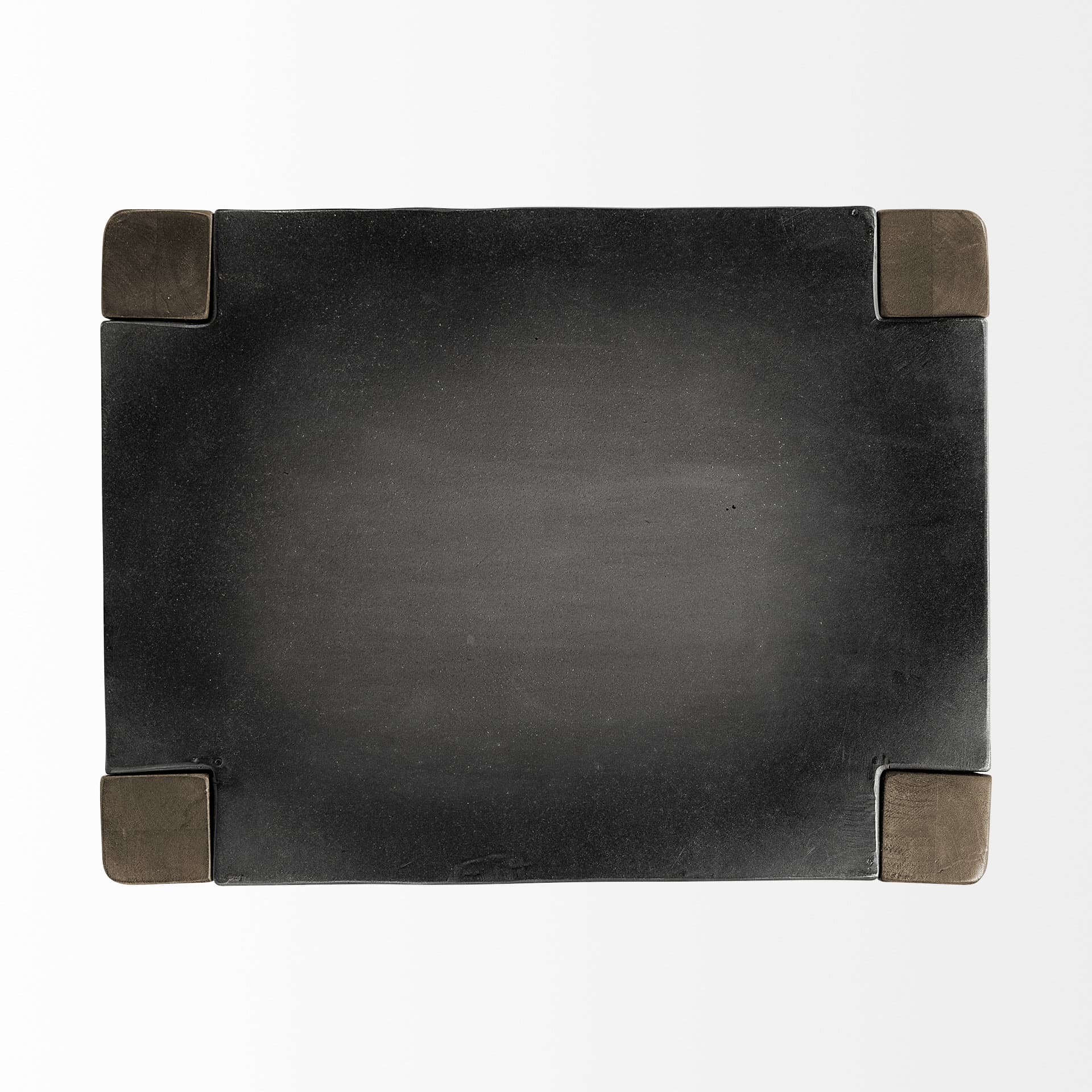 - Finish: Medium brown wood and matte-black metal