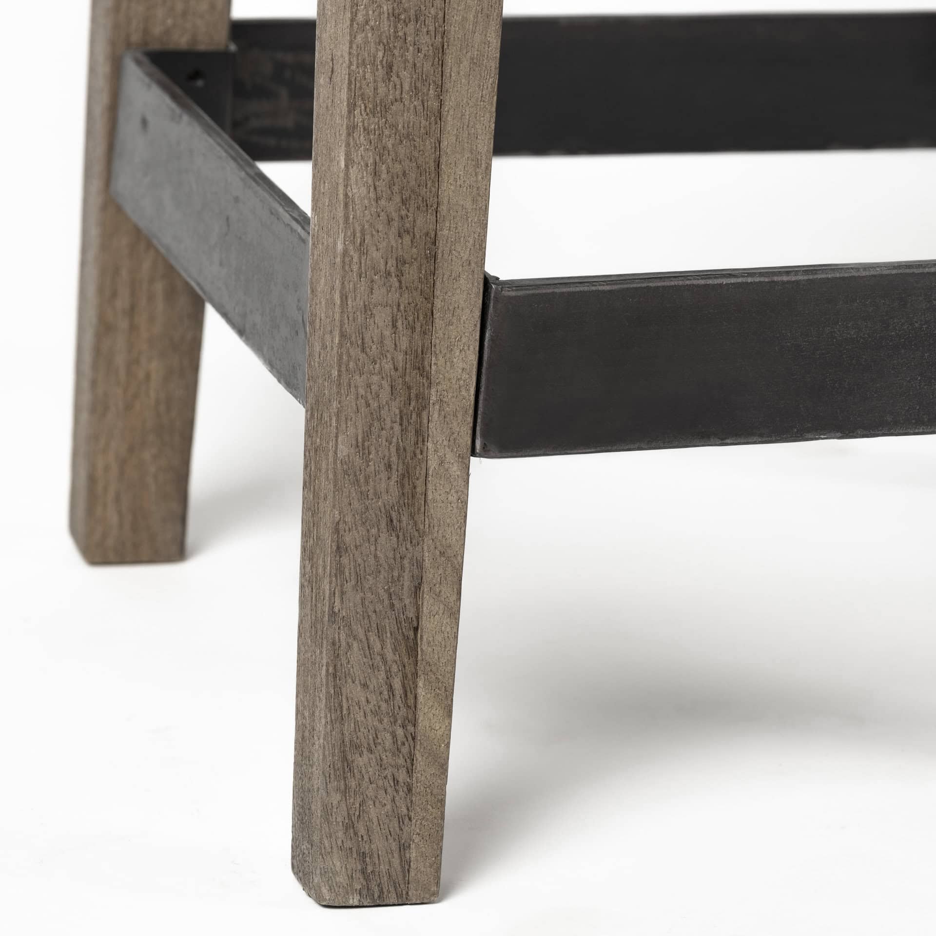 - Base: Four wooden legs with iron cross-brace