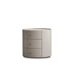 Looking for a stylish and practical addition to your living space? This round side table offers a unique blend of elegance and functionality. Featuring a luxurious leather upholstered finish and three soft-closing drawers, it’s the perfect storage solution for your essentials. Its calming sand color effortlessly complements any home decor.