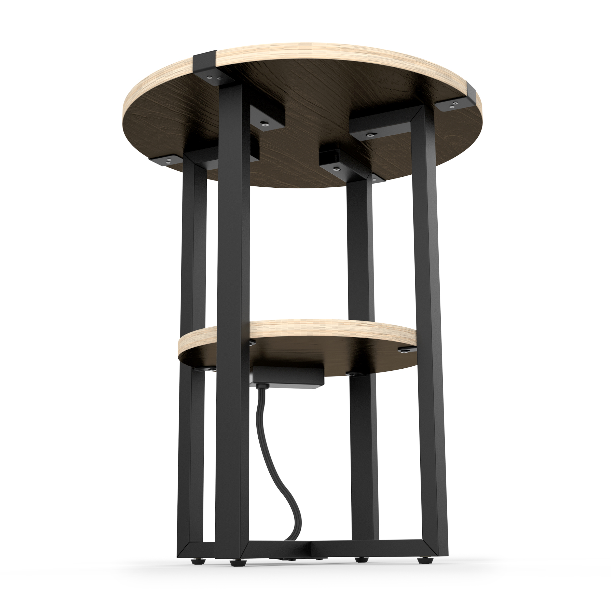 This round side table features a modern design that seamlessly blends with various decorative styles. It offers a convenient functionality for charging up to 4 devices at one time on the 2nd tier shelf. The 2-tier shelf also provides ample space to store your TV remote and other small items. Whether you’re a fan or simply appreciate well-crafted furniture, this side table is a versatile addition to any room.