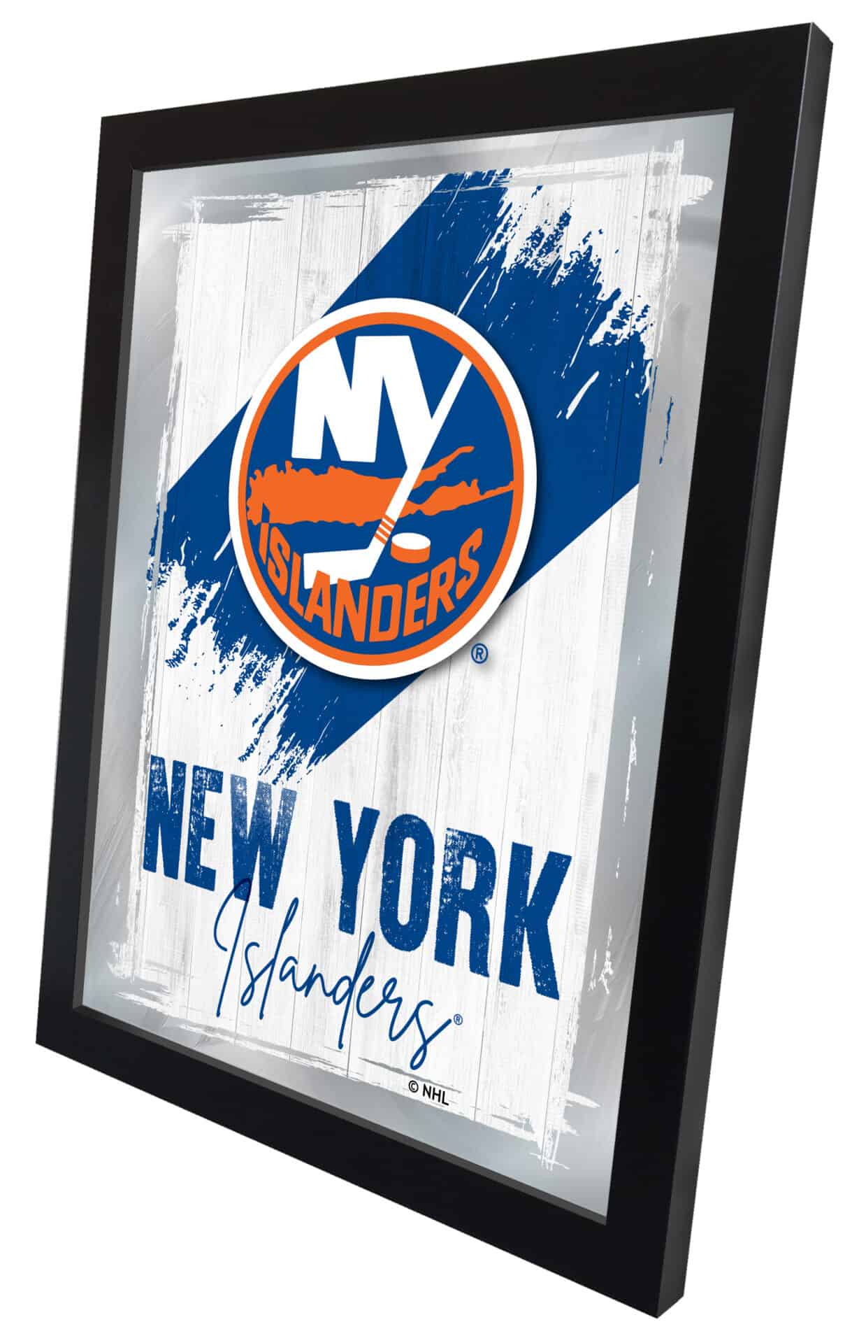 Show your team pride with this Official Licensed NHL Logo Mirror. With its simple yet elegant design, vibrant colors burst through the 1/8″ thick glass, enhanced by mirrored accents. The mirror is framed in a sleek black, 1 1/4″ wrapped wood frame with saw tooth hangers, making it an ideal addition to your office, garage, or any room in your home. Whether as a gift for a superfan or a treat for yourself, this 17″ x 22″ mirror is a perfect way to showcase your passion.
