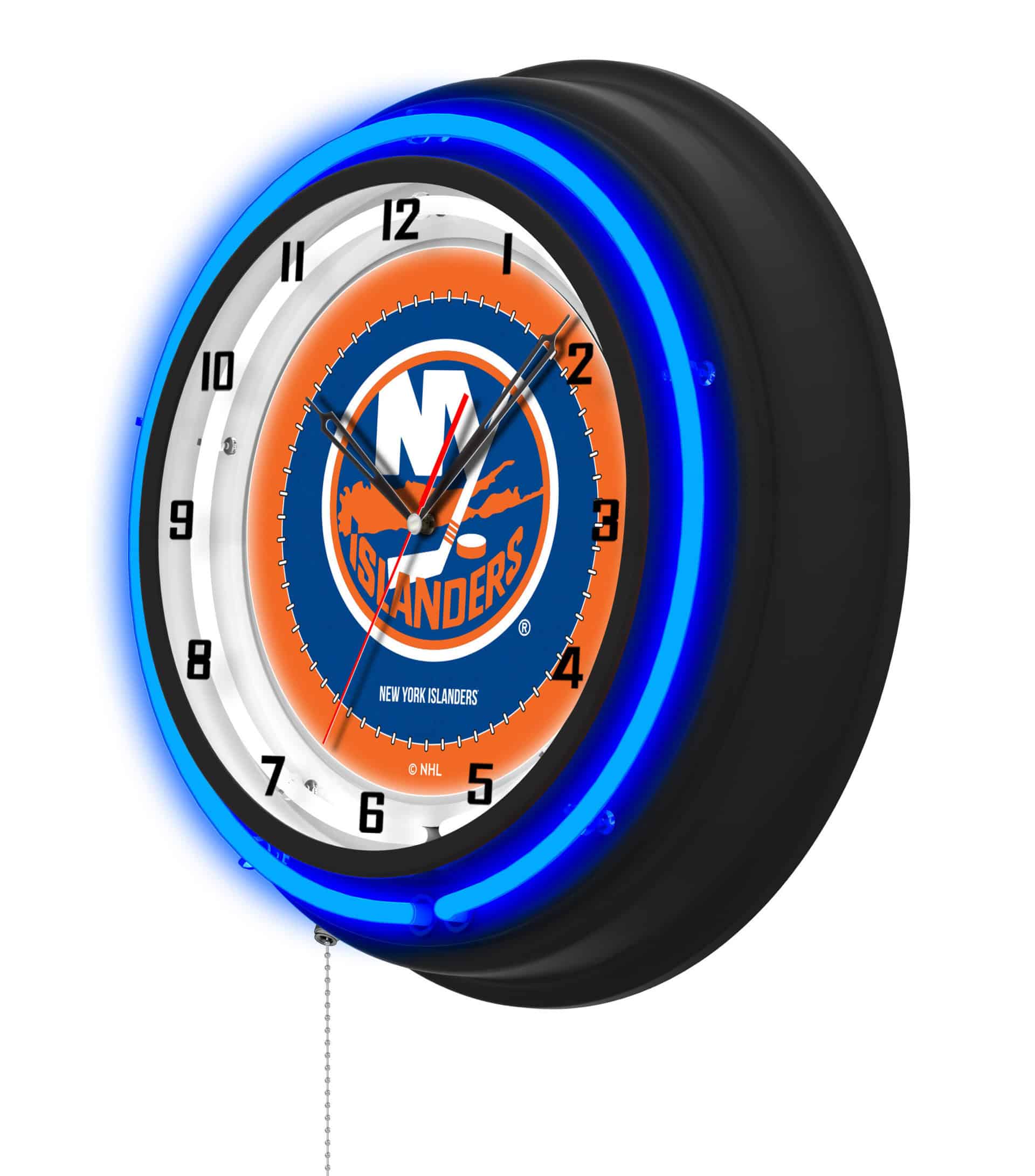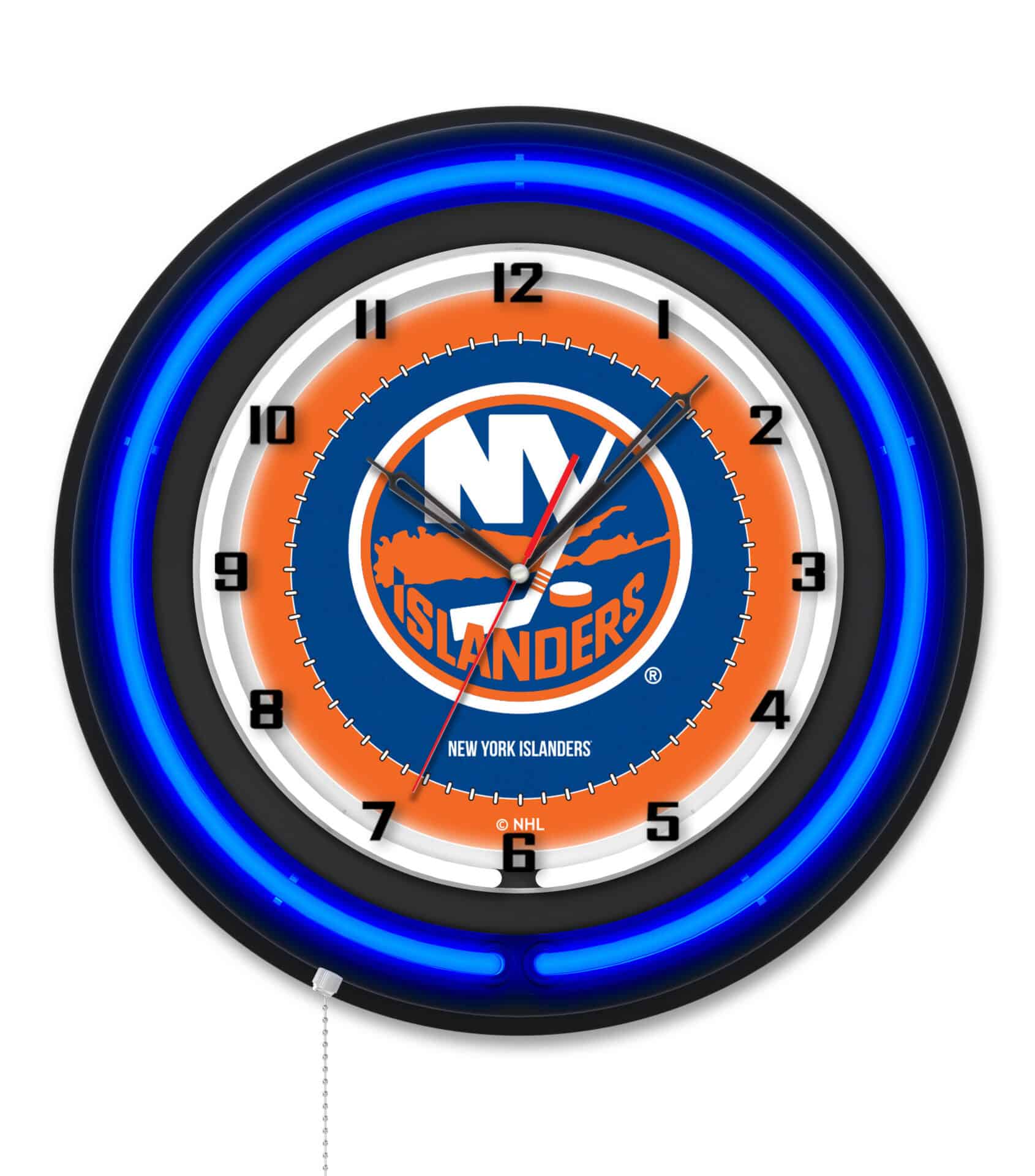The New York Islanders 19-Inch Double Neon Wall Clock in Black is the ultimate addition to any sports fan’s man cave. This clock not only serves as a functional timepiece but also showcases vibrant team pride with its stunning neon features. The black casing is complemented by a neon outer ring in team colors, while the clock face is illuminated by a brilliant white inner neon ring. With easy operation and high-quality construction, this clock is perfect for gifting or personal use.