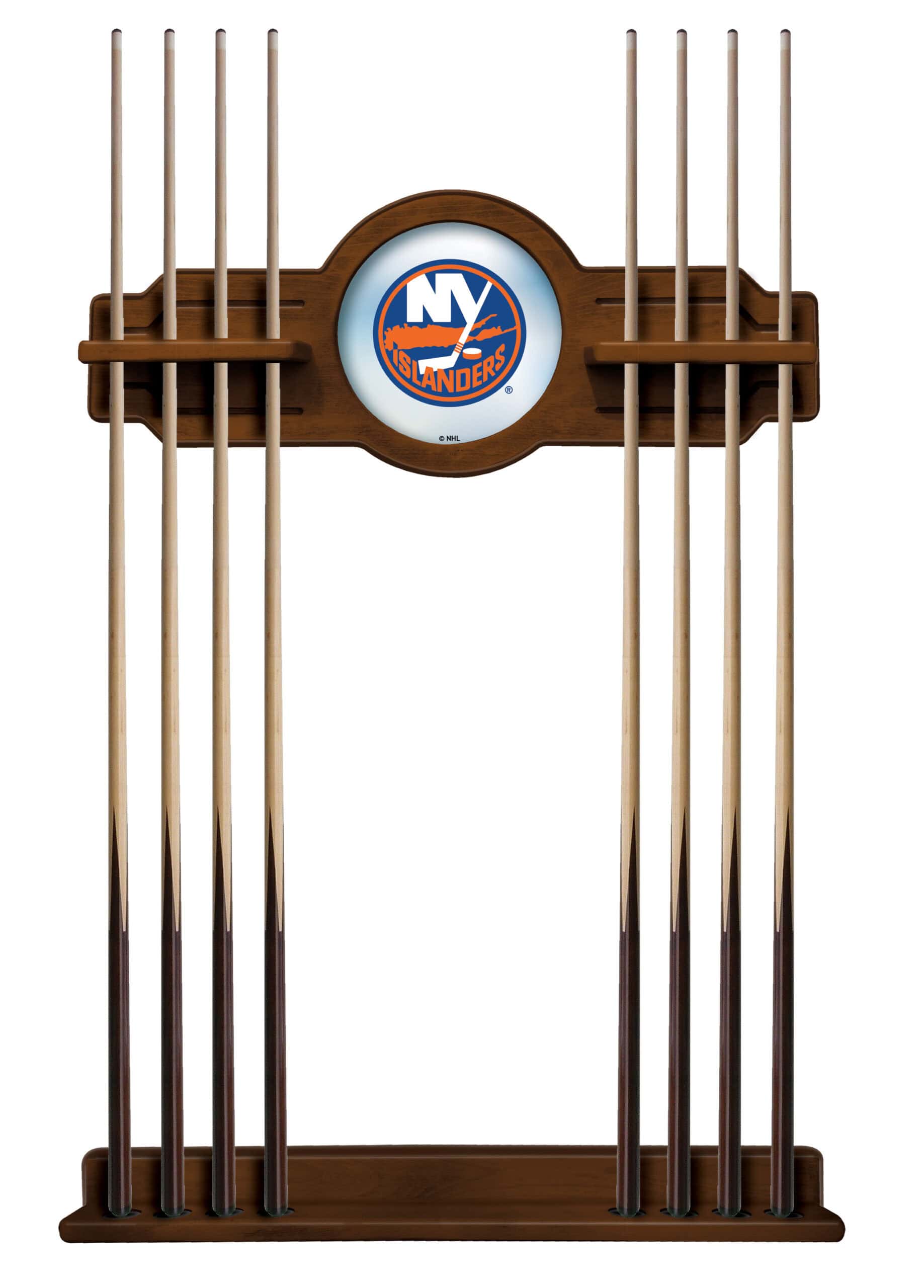 Elevate your game room with this premium New York Islanders Chardonnay Logo Cue Rack, a must-have accessory for pool enthusiasts and sports fans. Crafted with exceptional attention to detail, this cue rack offers both functionality and stylish team spirit. Designed to securely hold and display your pool cues, this rack combines superior craftsmanship with official team branding.