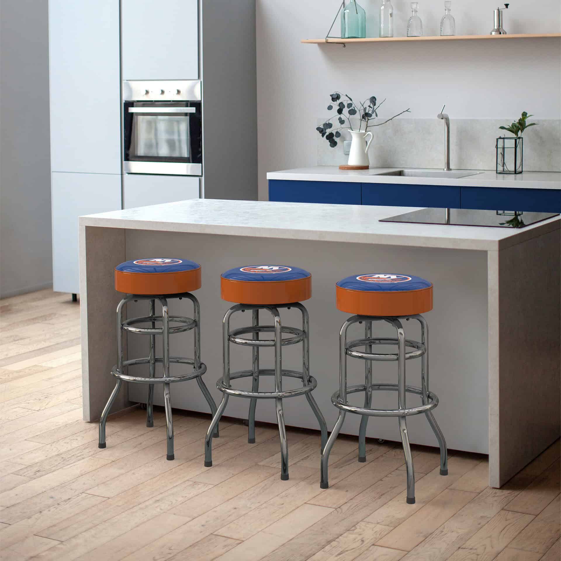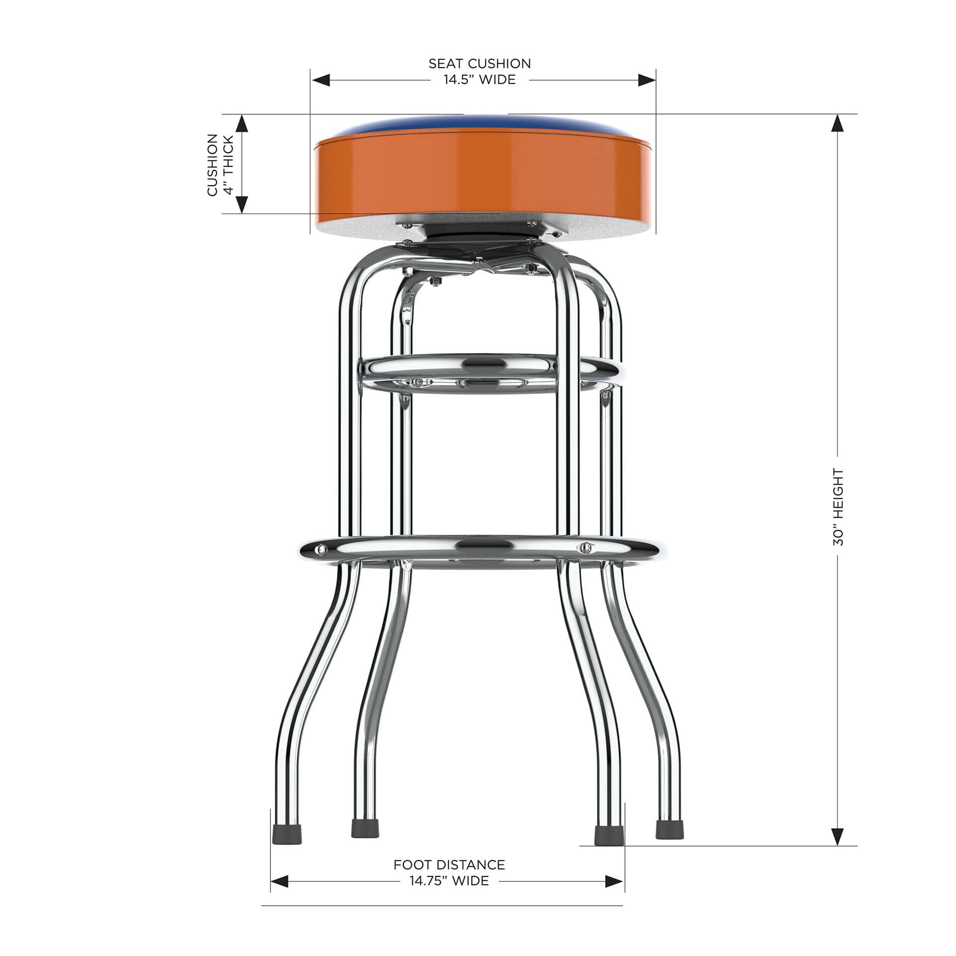 This commercial-grade bar stool is a stylish and durable addition to any fan cave. Show off your team pride with this quality constructed stool featuring vibrant team colors and logos. Built to last, this stool is perfect for game days and everyday use. Enjoy American-made quality and unparalleled durability.