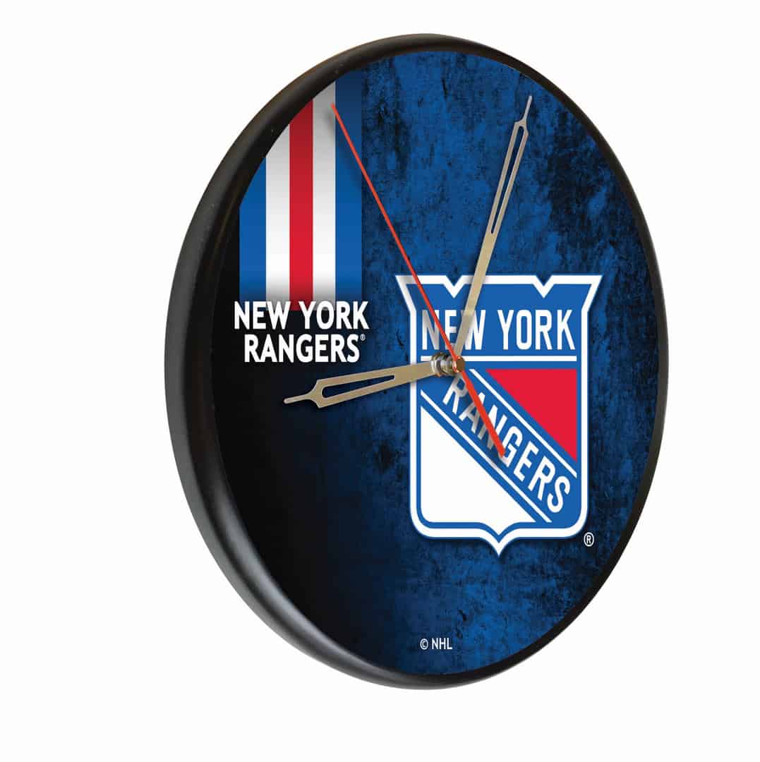 The New York Rangers 13-Inch Solid Wood Clock in Black (Alternate) is the ideal addition to any fan’s space, showcasing team pride while providing accurate timekeeping. This officially licensed clock features a stunning first surface, digitally printed graphic that utilizes UV inks for vibrant colors that won’t fade over time. With its accurate quartz movement powered by a single AA battery, this clock combines functionality with stylish decor. The recessed keyhole hanger allows for a sleek and flat wall installation, perfect for any man cave or sports-themed room.
