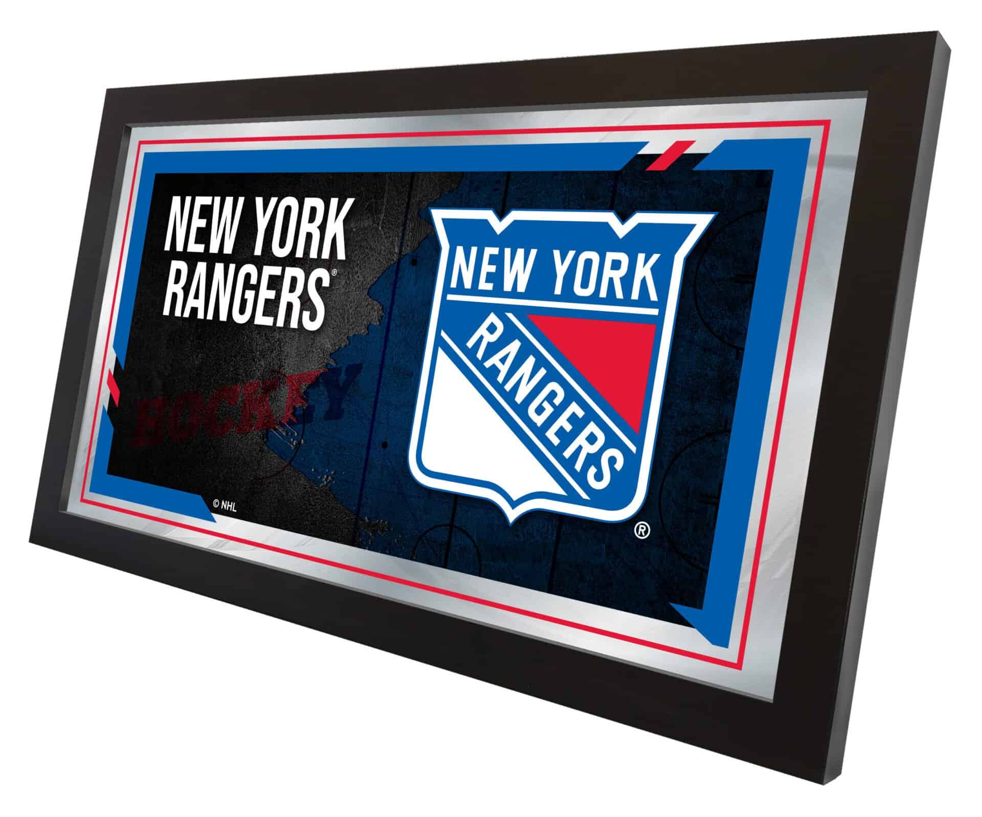 The perfect way to show your team pride, our hockey Collector mirror displays your team’s symbols with a style that fits any setting. With its simple yet elegant design, vibrant colors burst through the 1/8″ thick glass and are beautifully highlighted by the mirrored accents. Framed with a black, 1 1/4″ wrapped wood frame and equipped with saw tooth hangers, this mirror measuring 15″(H) x 26″(W) is ideal for your office, garage, or any room in your home. Whether purchasing as a gift for a recent grad, a sports super fan, or for yourself, you can take satisfaction knowing you’re buying a high-quality mirror that enhances any decor.