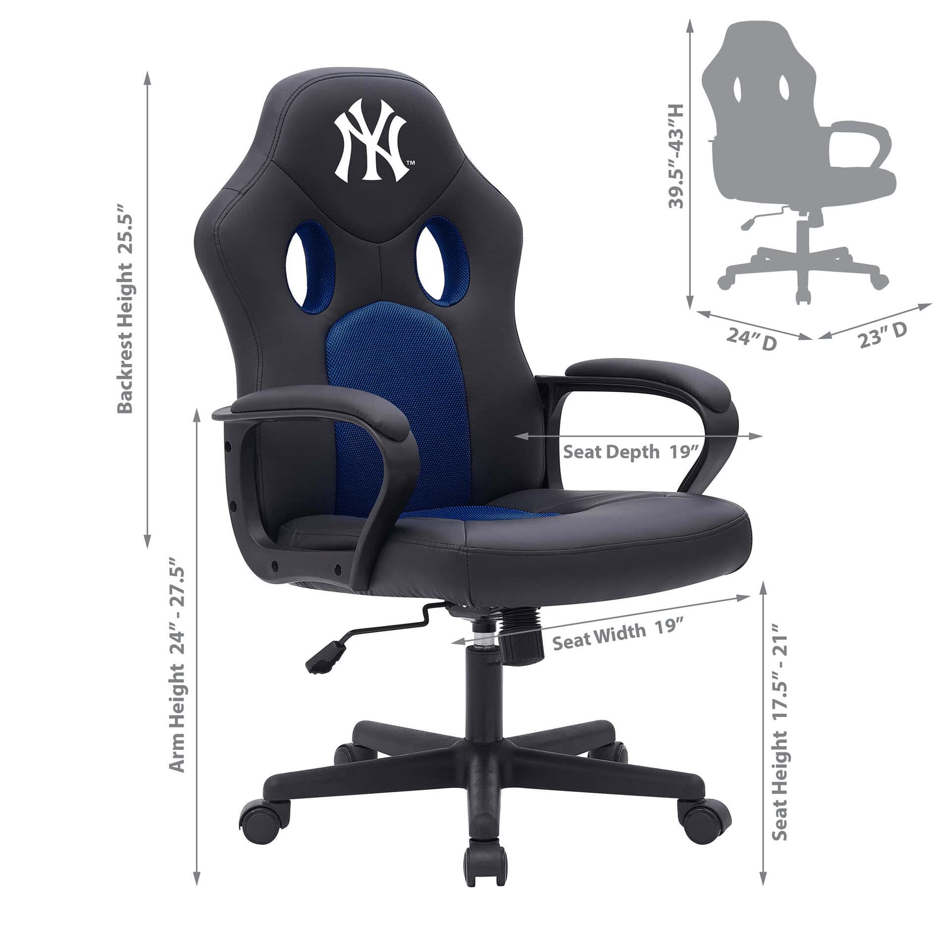 Show off your team pride with this awesome gaming chair! It’s perfect for young fans and adds a sporty touch to any space. The team color jersey-like mesh keeps you cool and comfy during long gaming or study sessions. You can easily customize the adjustable seat height for the perfect fit. The tilt mechanism lets you lean back and relax. Plus, the 360-degree swivel means you can turn around without getting up. It has a sharp modern design, so it looks great too! Weight Limit: 250 lbs. Recommended Height: 5’8″ inches. Dimensions: 23 x 24 x 40-43. Material: Polyester, Metal, Plastic.