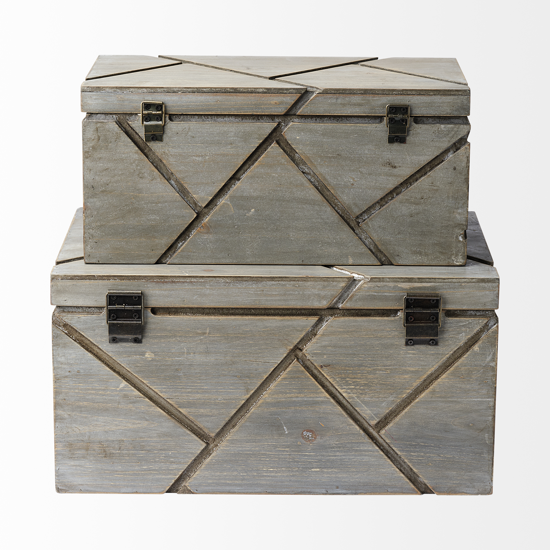 The Niobe nesting boxes offer a blend of refined style and practical storage. Handcrafted from wood with a light gray finish and a raised triangle pattern, these boxes bring a touch of elegance to any space. Use them to organize accessories, jewelry, or everyday essentials while enhancing your décor.
