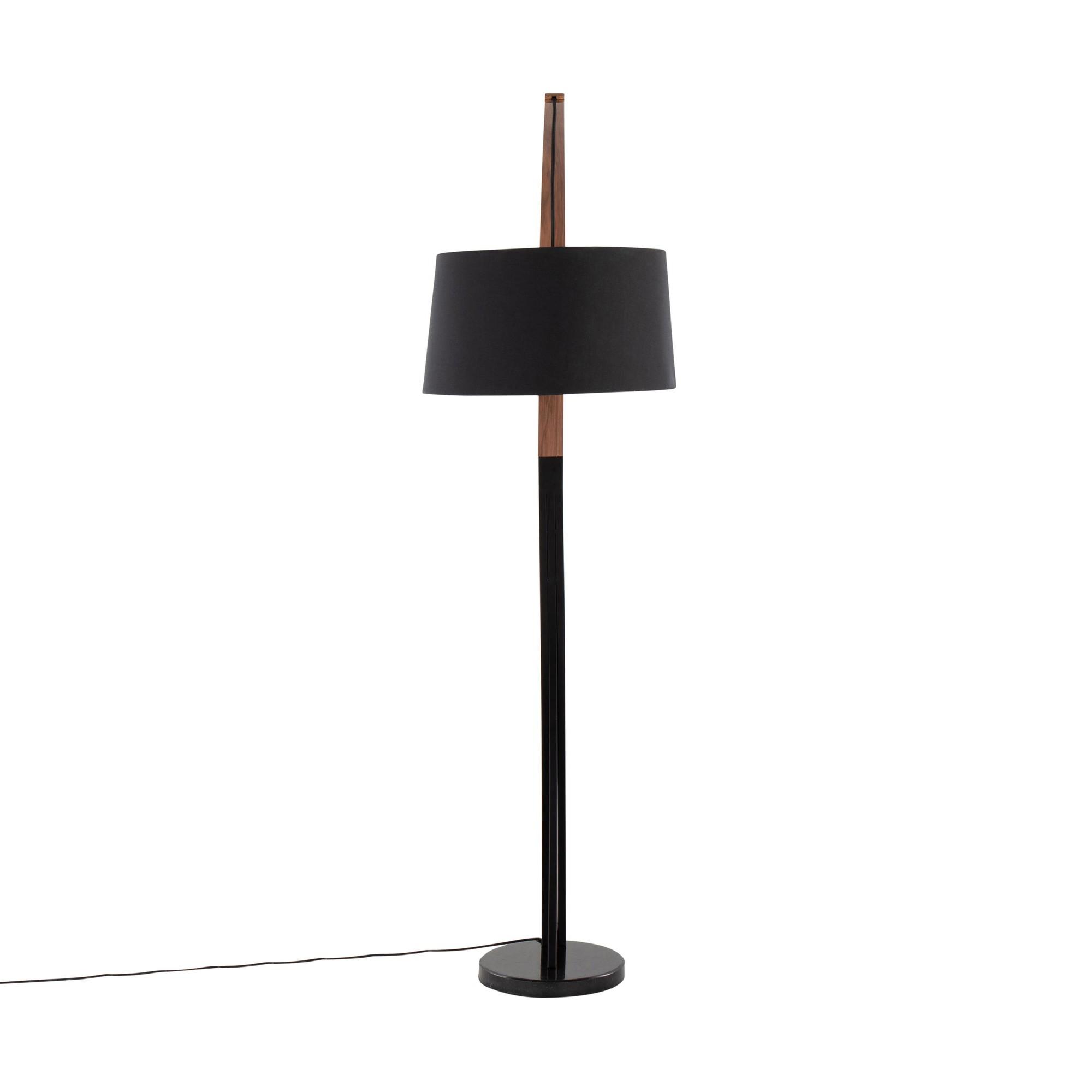 Noah Mid-Century Modern Walnut Wood and Marble Base Floor Lamp
