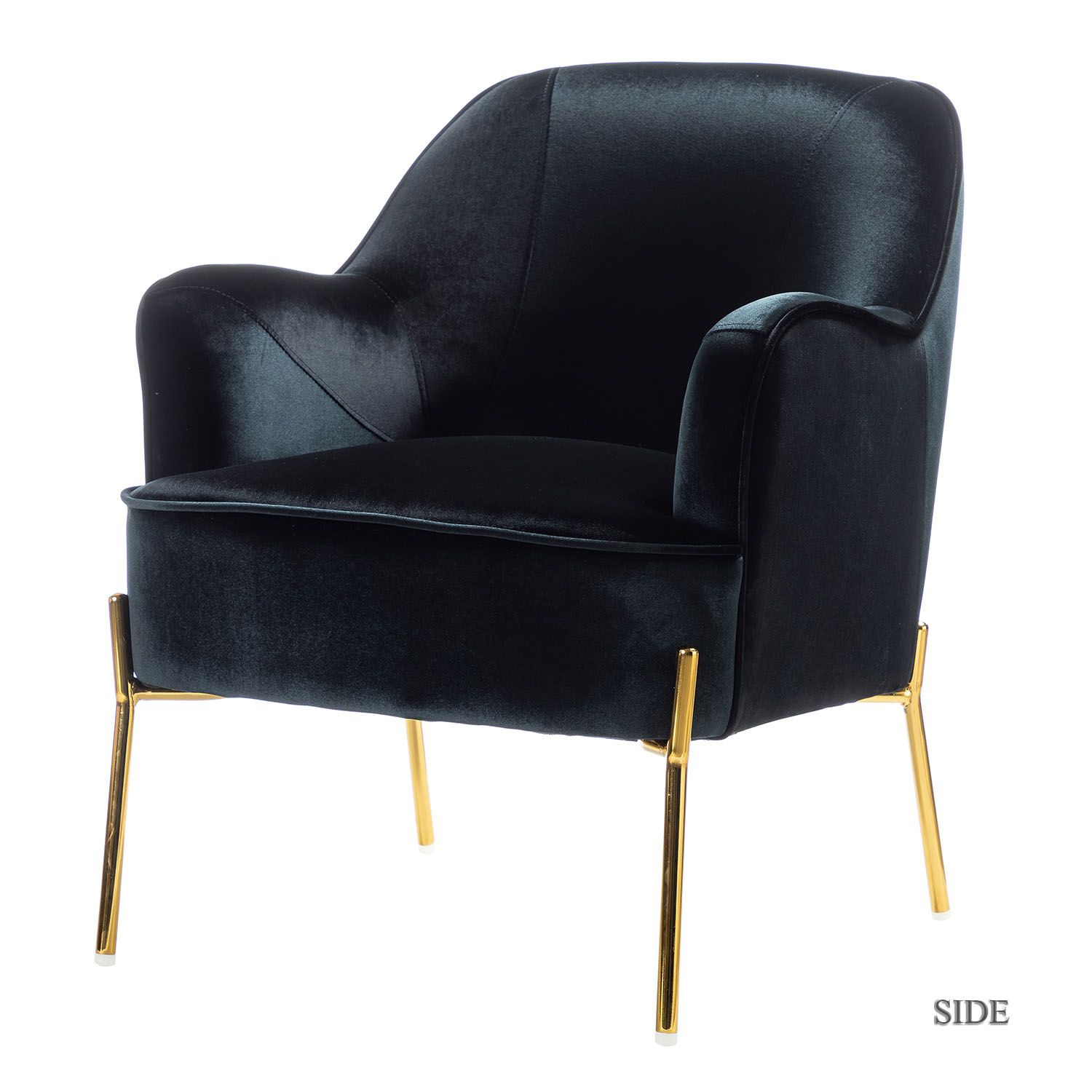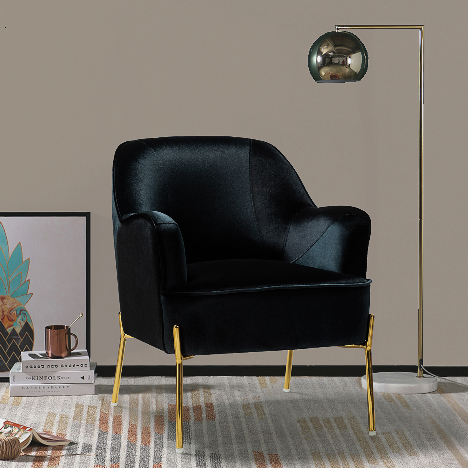 This elegant accent chair, designed with a mid-century modern flair and eye-catching gold legs, will add a touch of sophistication to any room. Sink into the luxurious velvet fabric and experience the perfect balance of comfort and support. The slender, polished gold metal legs not only enhance the modern design but also ensure lasting stability. It’s the perfect addition to your living room or bedroom, providing both style and relaxation.
