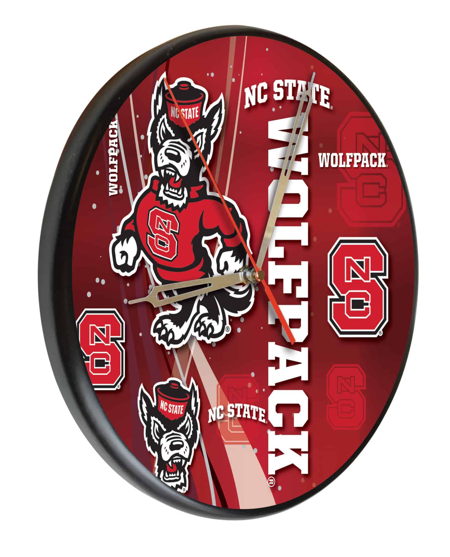 The North Carolina State University 13-Inch Solid Wood Clock in Black is the perfect statement piece for any man cave or fan space. This officially licensed clock showcases your school pride with its stunning first surface, digitally printed graphics that resist fading over time. Equipped with accurate quartz movement, it ensures precise timekeeping powered by a single AA battery (not included). The recessed keyhole hanger allows for easy installation, sitting flush against the wall for a polished, clean look. Ideal as a gift for graduates, sports enthusiasts, or for personal use, this clock combines functionality with a touch of school spirit.