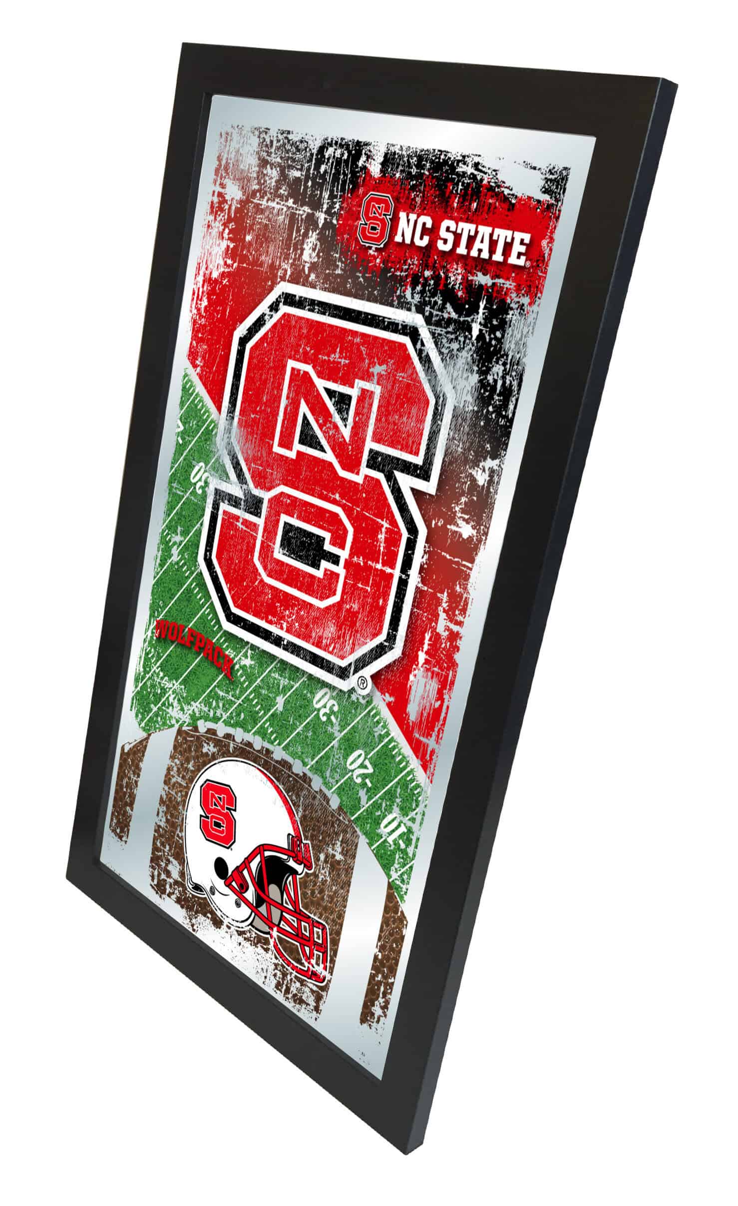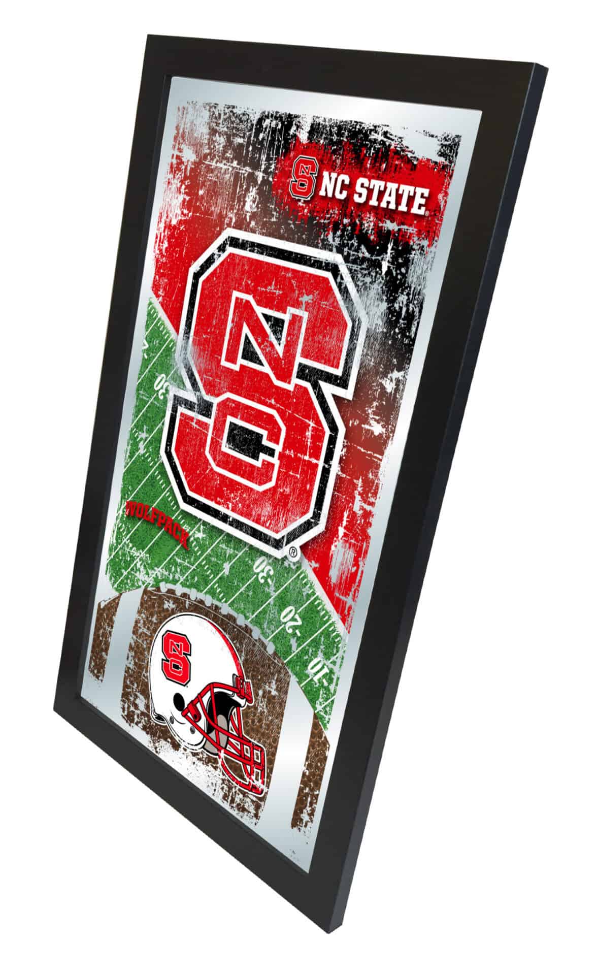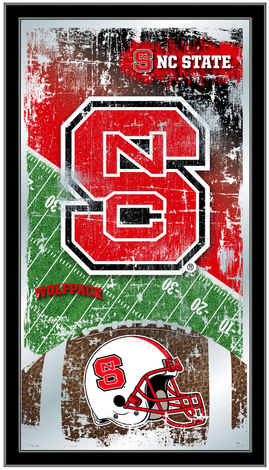 Show your school pride with this Official Licensed Football Mirror. Featuring a simple yet elegant design, the vibrant colors burst through the 1/8″ thick glass and are enhanced by mirrored accents. This mirror is framed with a black, 1 1/4″ wrapped wood frame and comes equipped with dual saw-tooth hangers, making it ideal for your office, garage, or any room in your home. Perfect as a gift for a recent graduate, sports super fan, or for personal use, you can take satisfaction knowing you are purchasing a high-quality mirror.