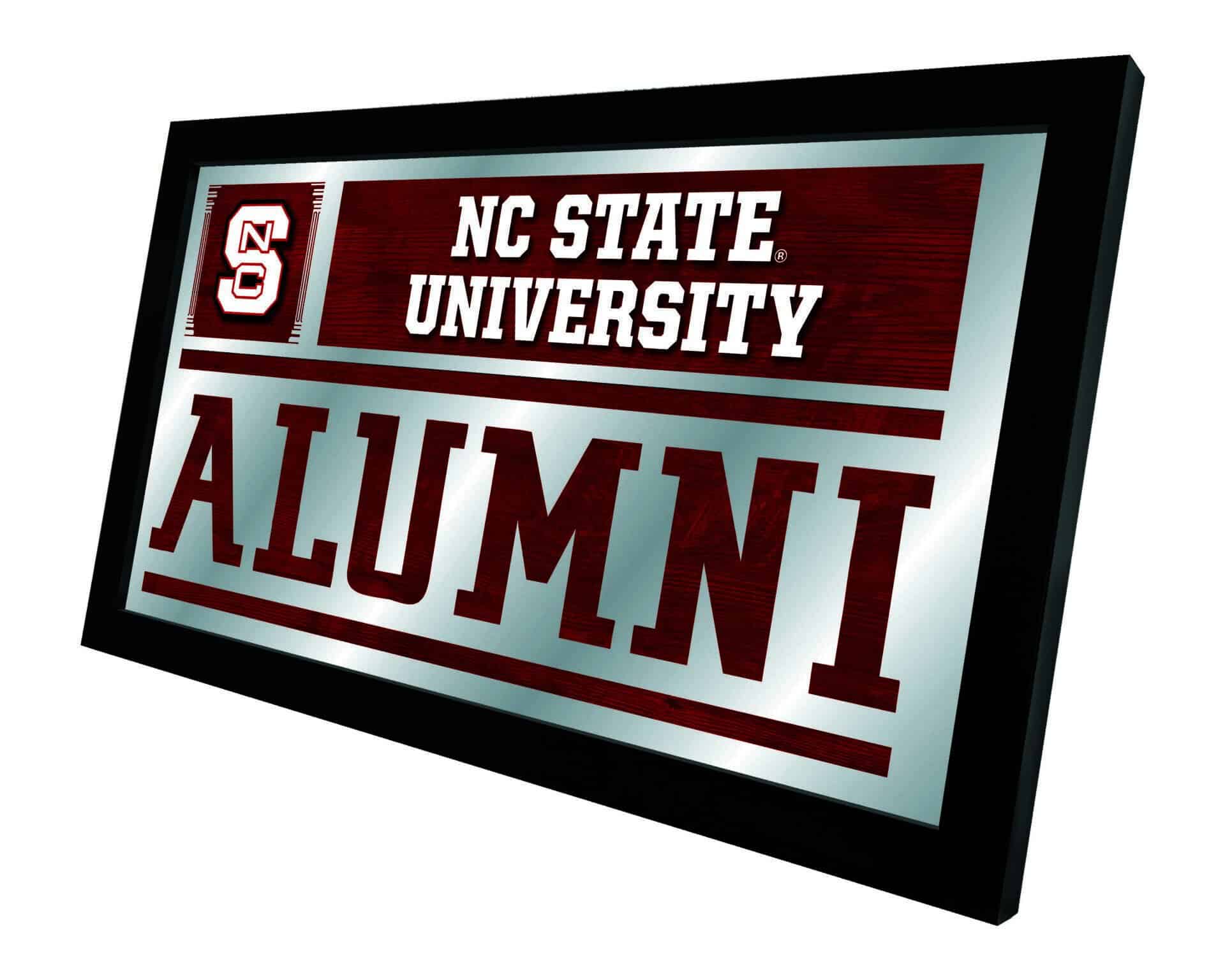 Show your school pride with the North Carolina State University Alumni Wall Mirror. This beautifully designed mirror features vibrant school colors that burst through the 1/8″ thick glass, complemented by mirrored accents. The mirror is framed in a sleek black, 1 1/4″ wrapped wood frame and includes saw tooth hangers for easy installation. Measuring 26″ in height and 15″ in width, it’s perfect for your office, garage, or any room in your home. Whether you’re treating yourself or purchasing a gift for a recent graduate, this mirror is an ideal choice for showcasing your alumni pride.