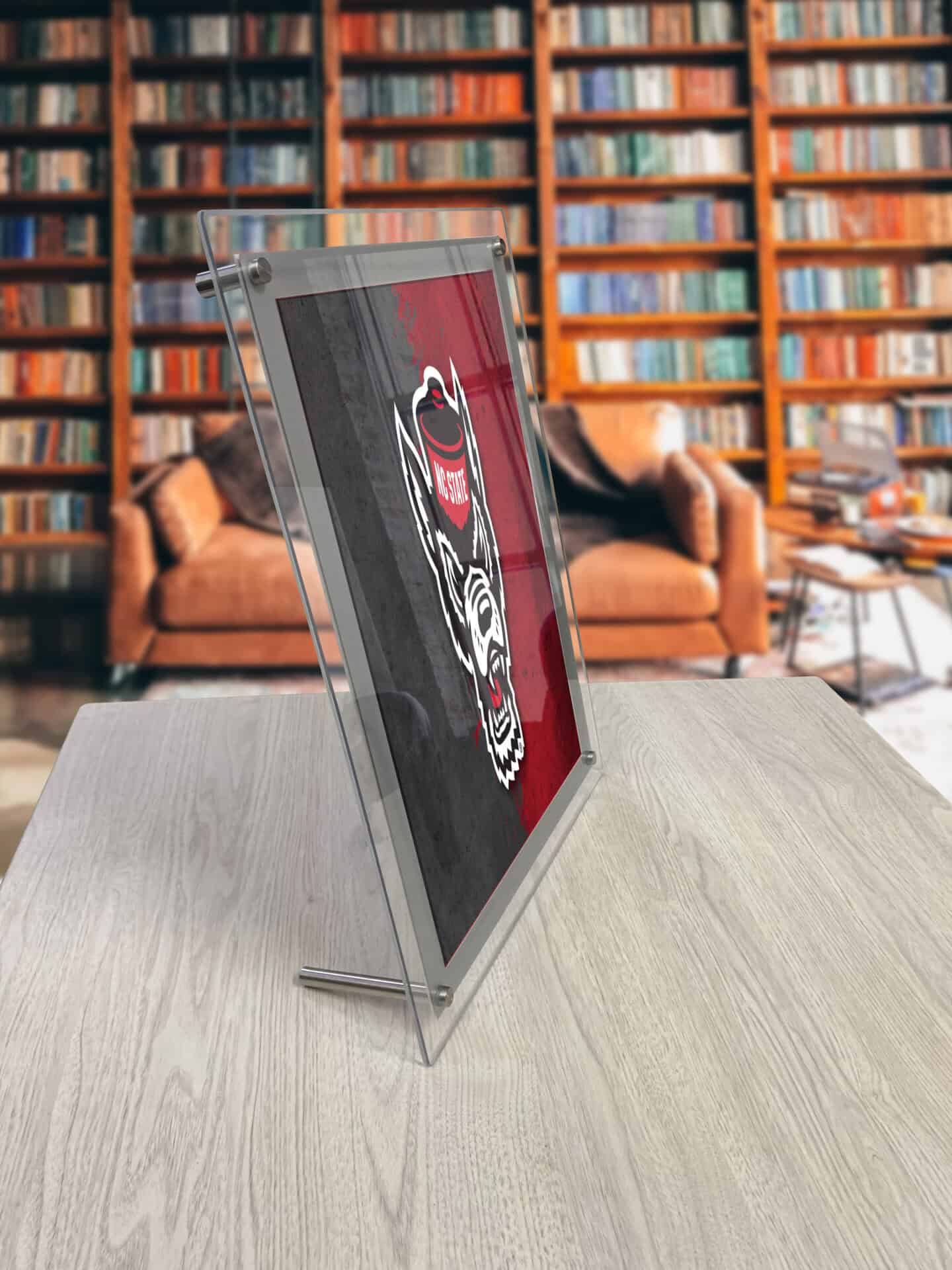 - Mounting Options: Includes hardware for wall mounting (1″ stand-offs) or desktop display (3 3/4″ foot).