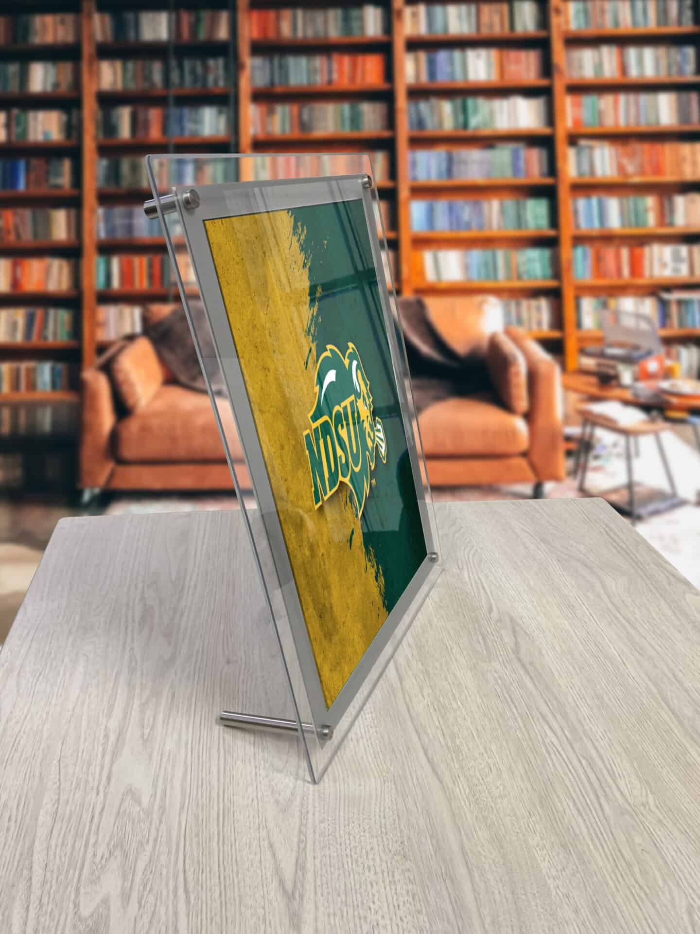 - Mounting: Includes hardware for wall mounting (1″ Stand-offs) or desktop display (3 3/4″ foot).