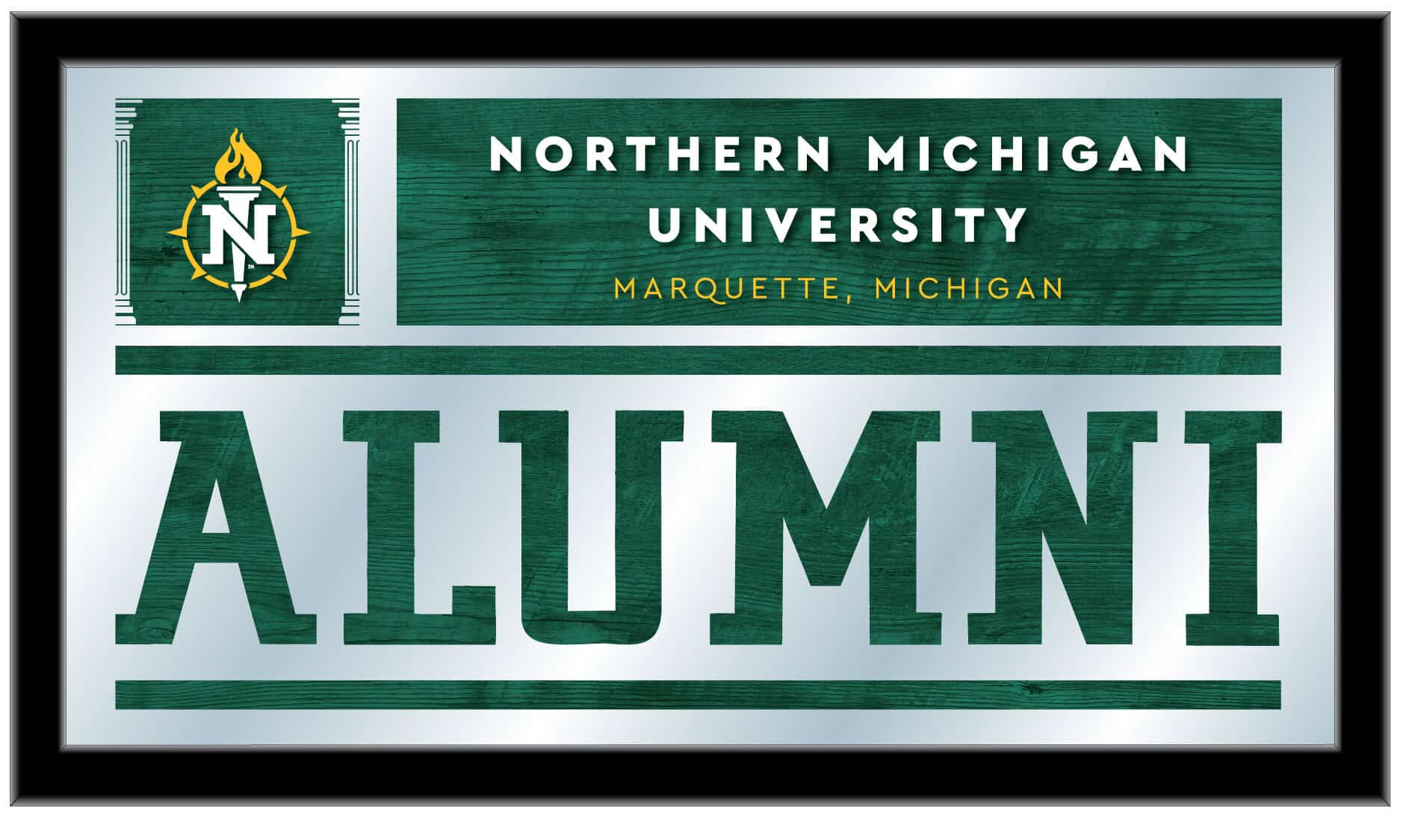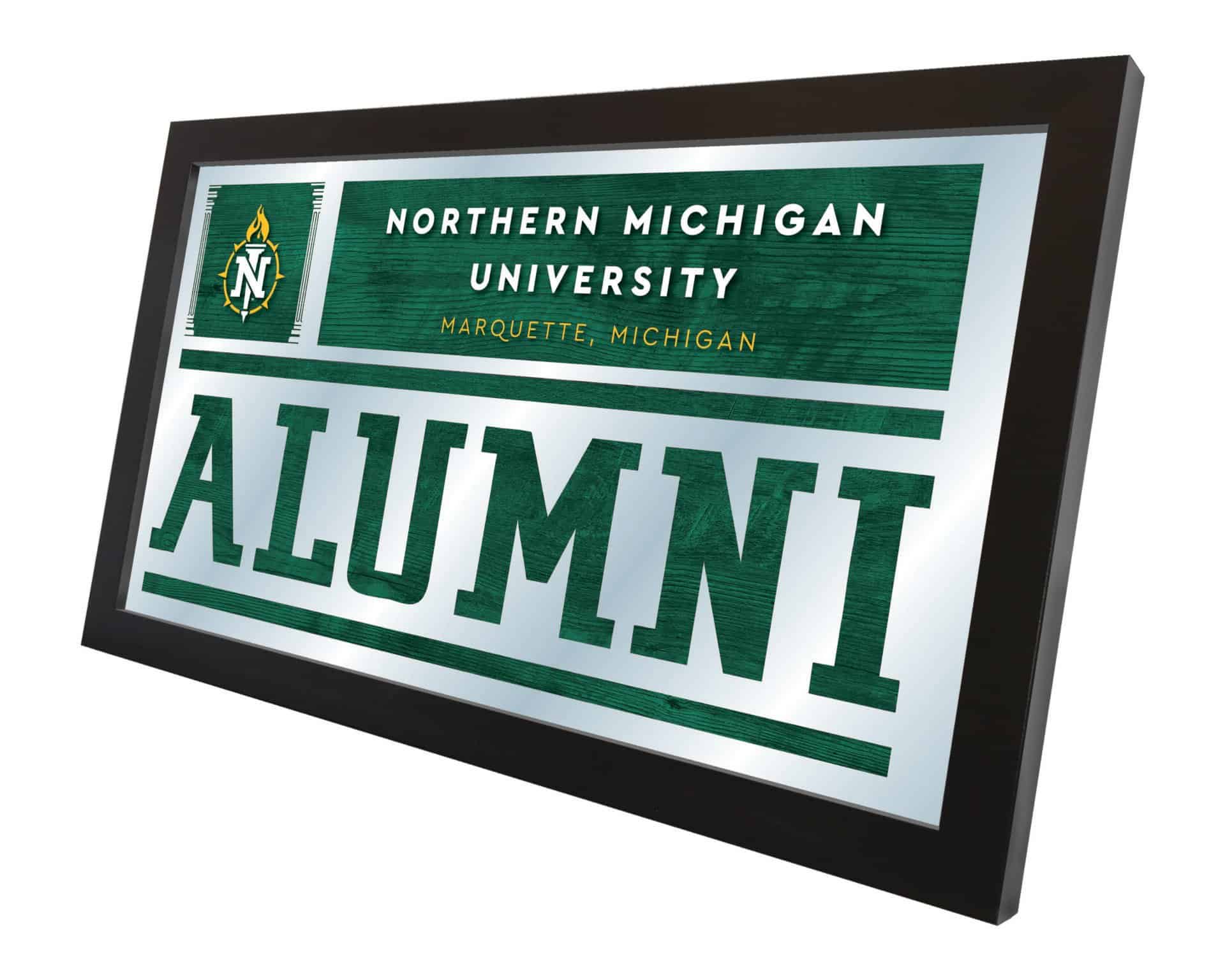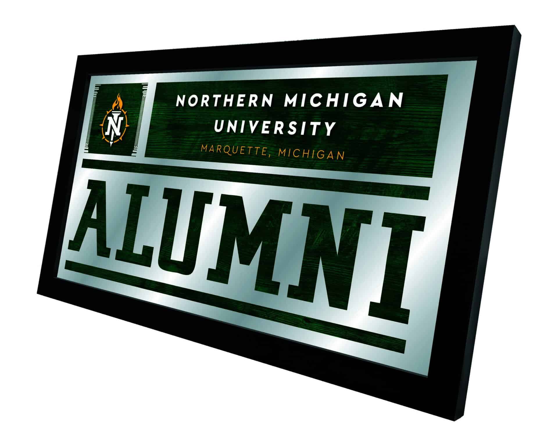 Show your school pride with the Northern Michigan University 26×15 Alumni Wall Mirror. Featuring a simple yet elegant design, this mirror showcases vibrant school colors through its 1/8″ thick glass adorned with mirrored accents. The mirror is framed in a black, 1 1/4″ wrapped wood frame and includes saw-tooth hangers, making it perfect for your office, garage, or any room in your home. Whether you are purchasing it as a gift for a recent graduate or treating yourself, you can take pride in this stylish and functional piece.