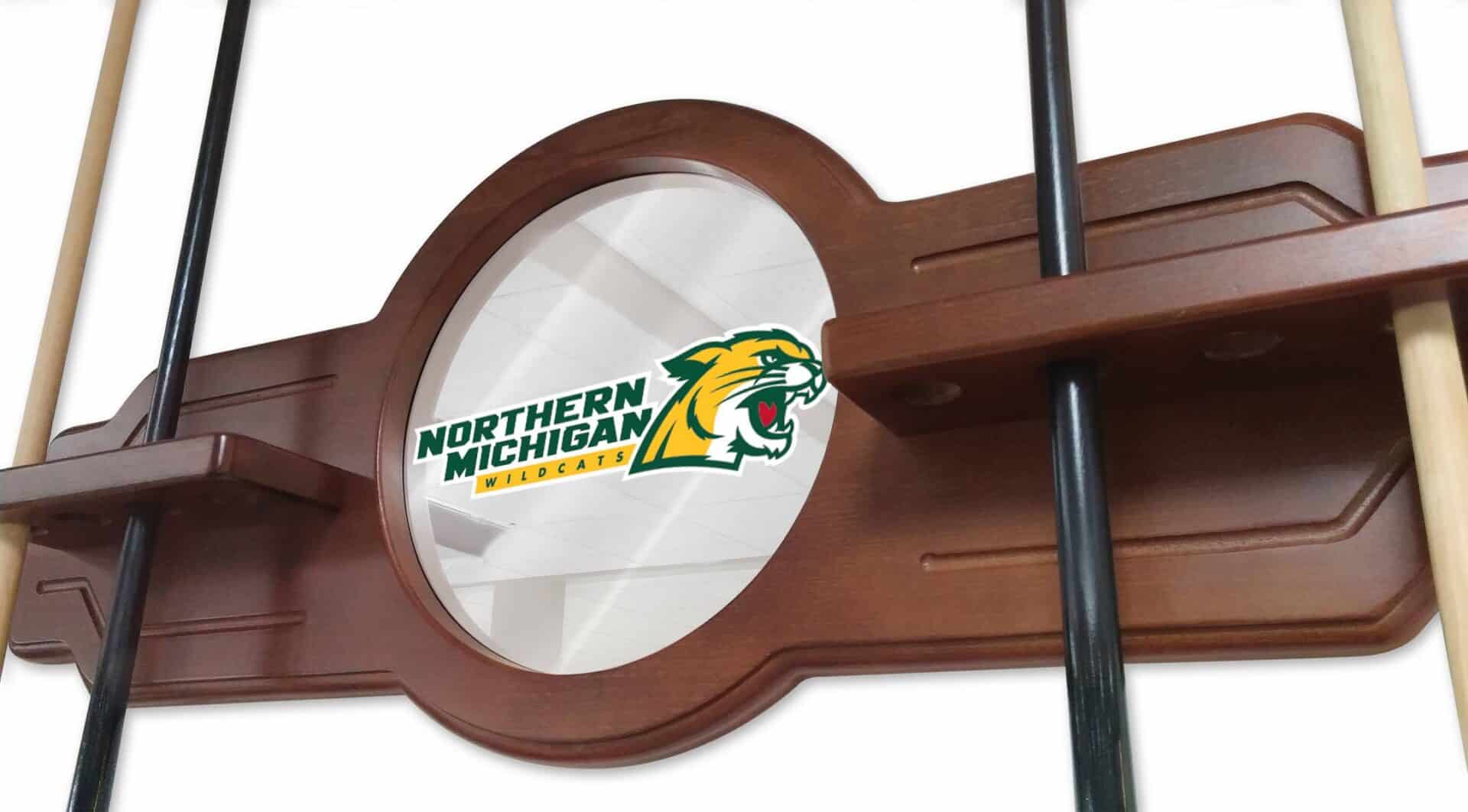 Elevate your game room with the Northern Michigan University English Tudor Logo Cue Rack, a premium accessory designed for passionate pool enthusiasts and university sports fans. This meticulously crafted cue rack combines exceptional functionality with stylish design, providing a sophisticated storage solution for your pool cues while showcasing your university pride.