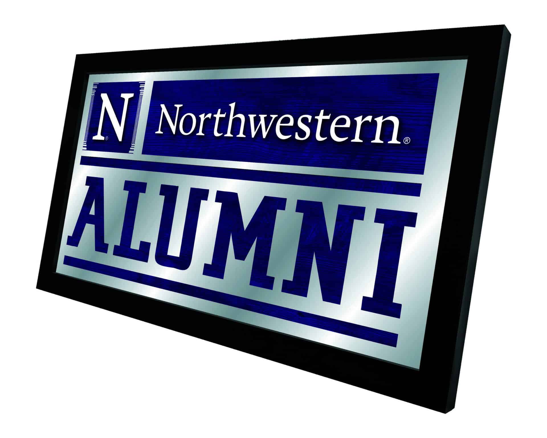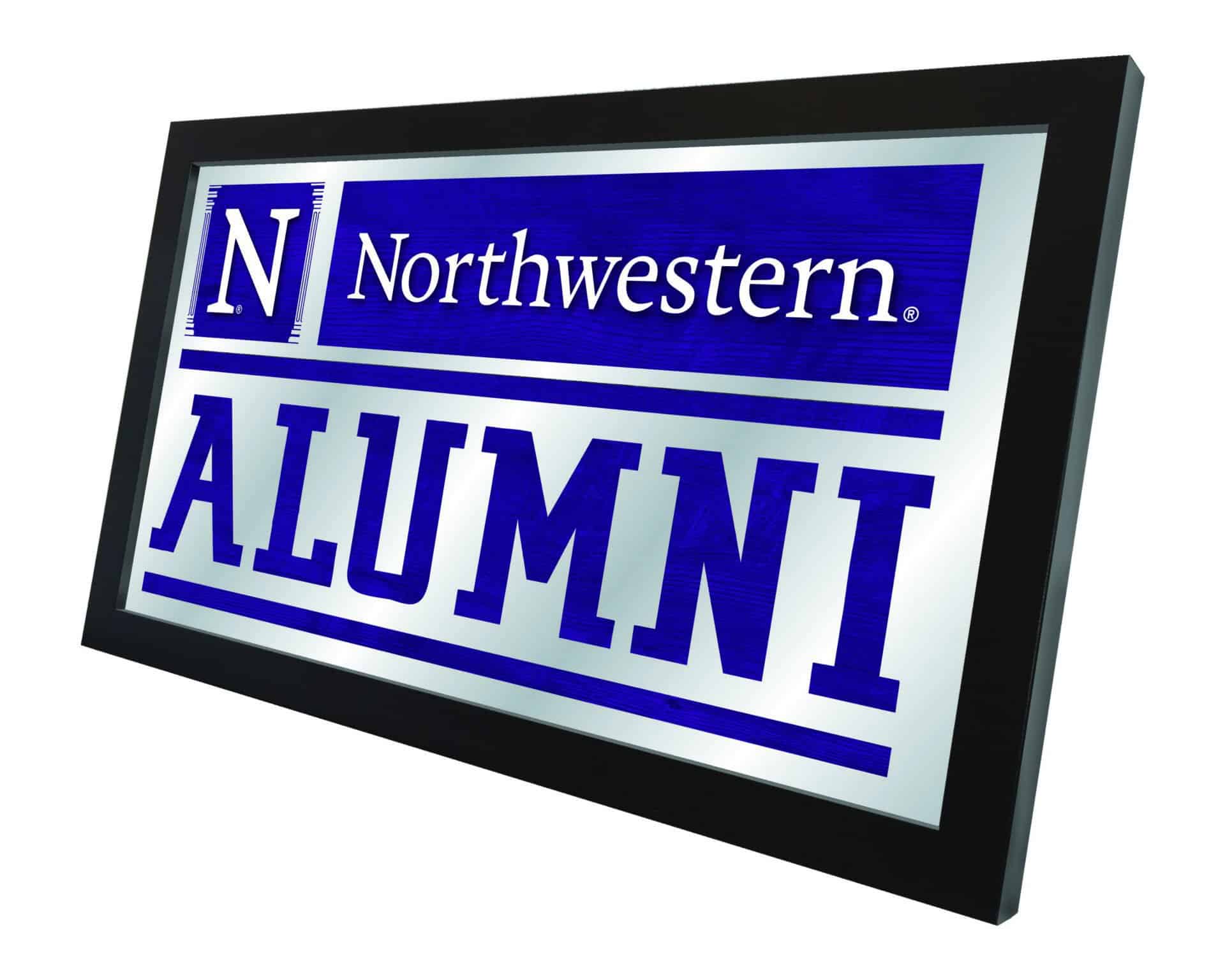 Show your school pride with the Northwestern University 26×15 Alumni Wall Mirror. This mirror features a simple yet elegant design, showcasing vibrant school colors through the 1/8″ thick glass, complemented by mirrored accents. The mirror is framed with a stylish black, 1 1/4″ wrapped wood frame, making it a perfect addition to your office, garage, or any room in your home. Whether you’re treating yourself or gifting a recent graduate, this mirror is a proud representation of your alumni spirit.
